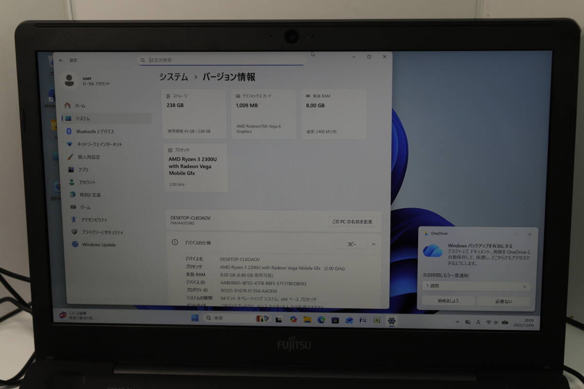 中古動作品 富士通 Lifebook AH43/D3 AMD Ryzen3 2.0GHz RAM8GB SSD256GB DVD Windows11home の出品です。