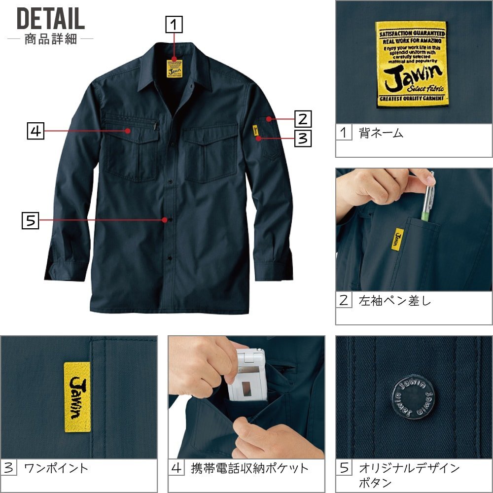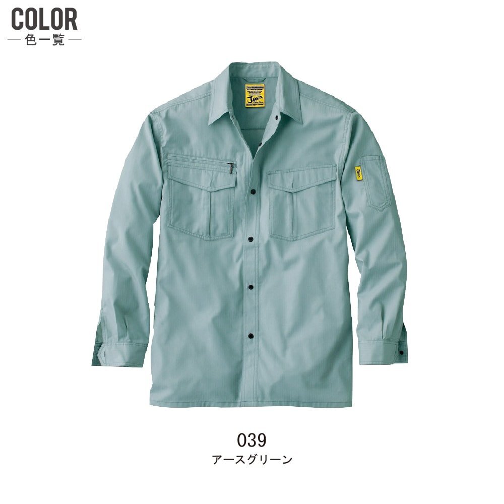 Jawin ジャウィン 通年 長袖 シャツ 豊富な機能 シャドーストライプ柄 55204 色:アースグリーン サイズ:S ★ 対象2点 送料無料 ★