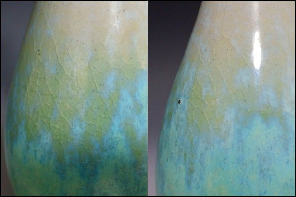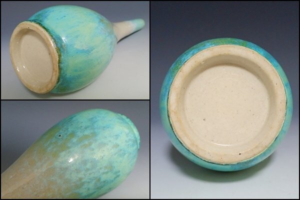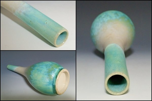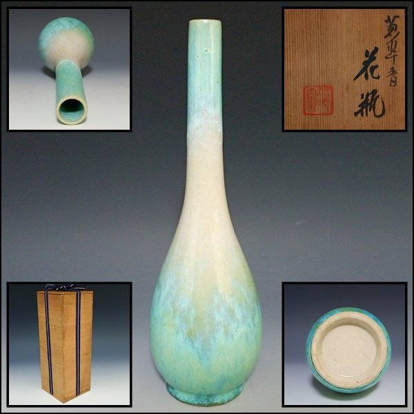 SP6403 北斗窯 黄翠青 鶴首 花瓶 花器 花入 壺 共箱 小森忍