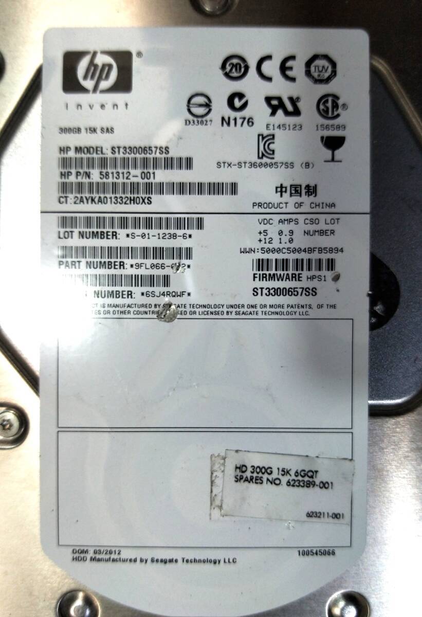 【中古パーツ】 3.5インチ HP ST33006657SS15K SAS 300GB HDD 正常品 1台■ SAS 2032