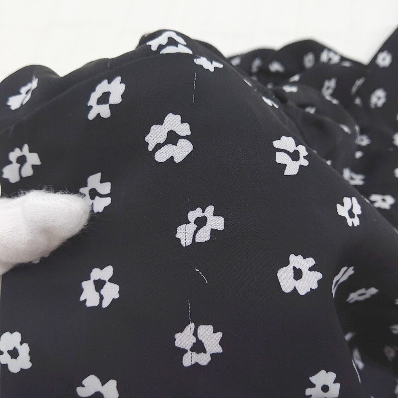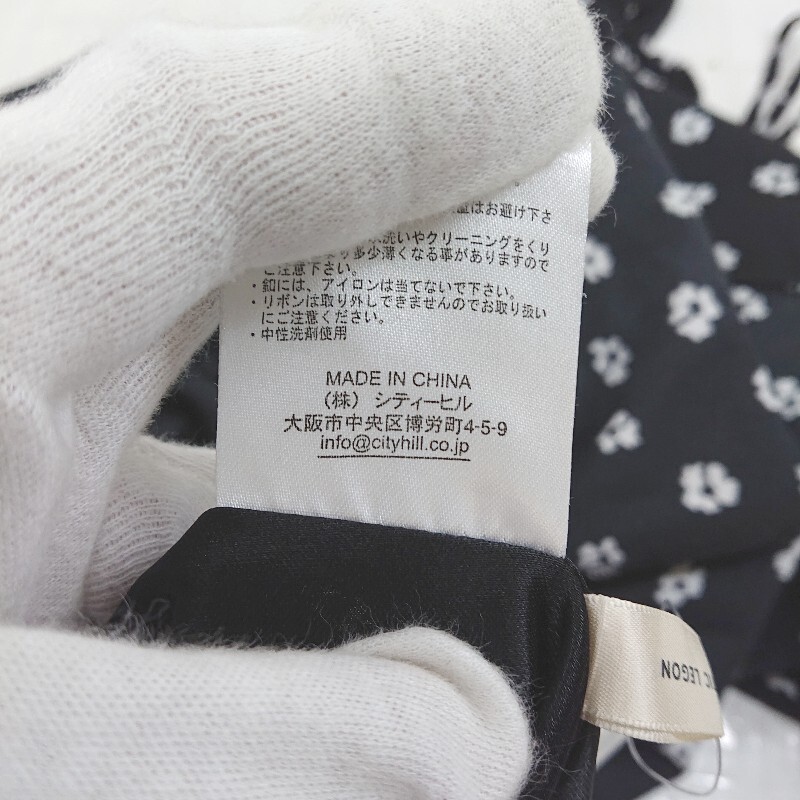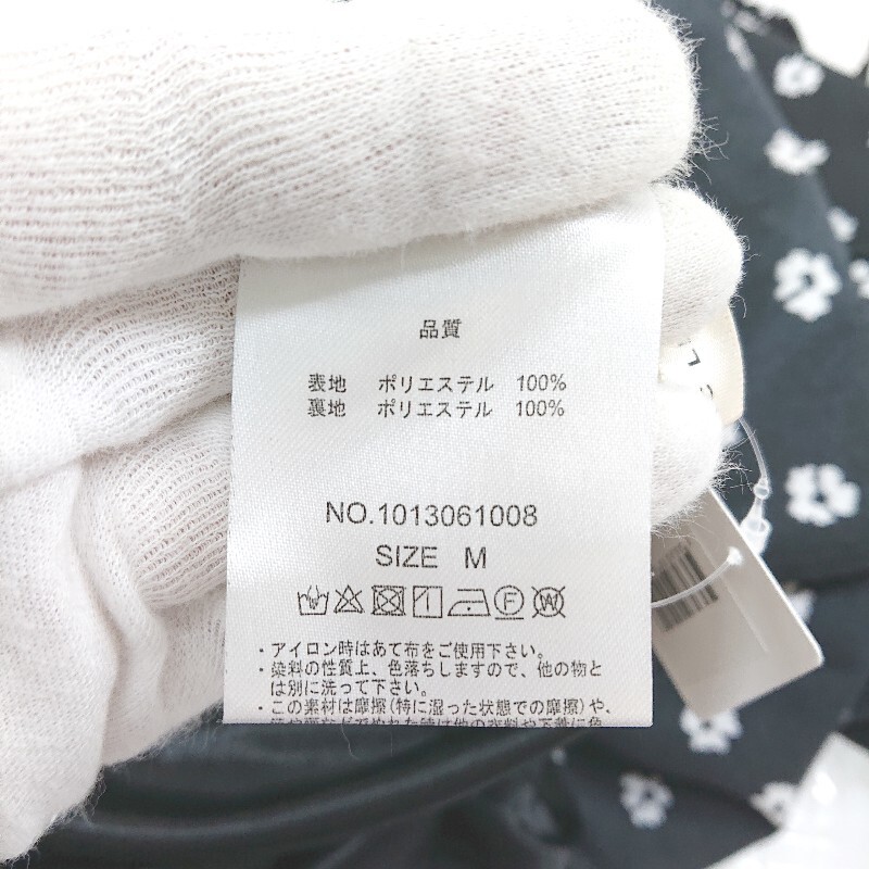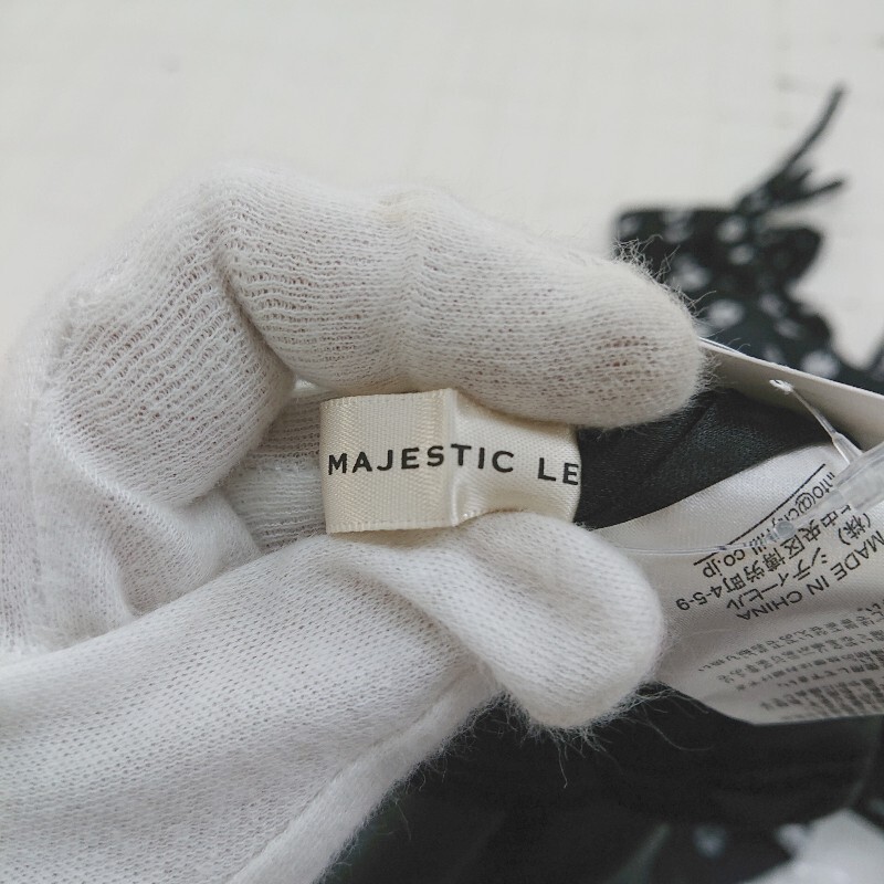 ◇ MAJESTIC LEGON マジェスティックレゴン 花柄 Vネック 半袖 膝下丈 ワンピース サイズM ブラック ホワイト レディース P