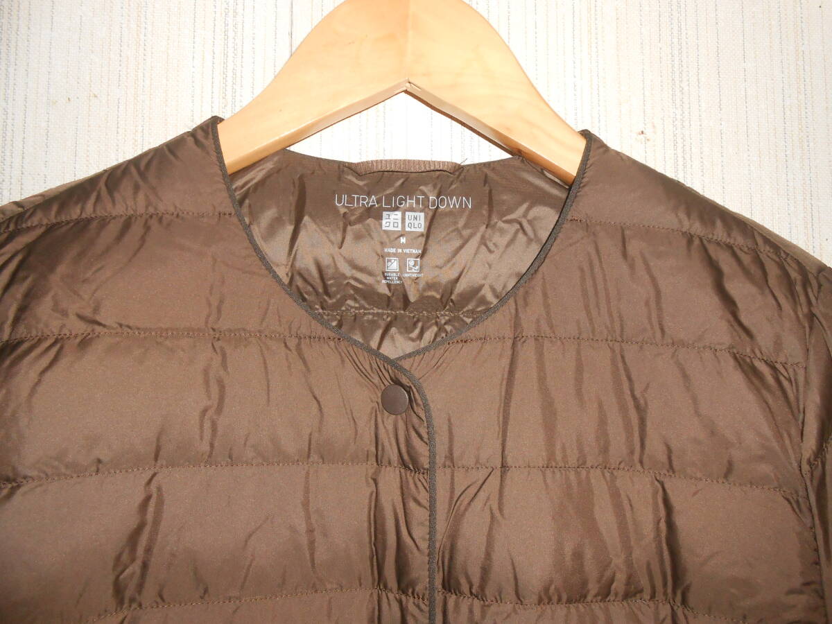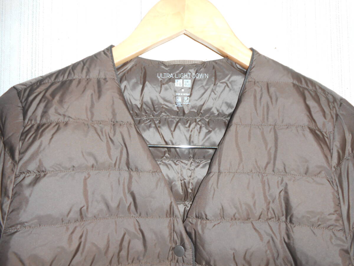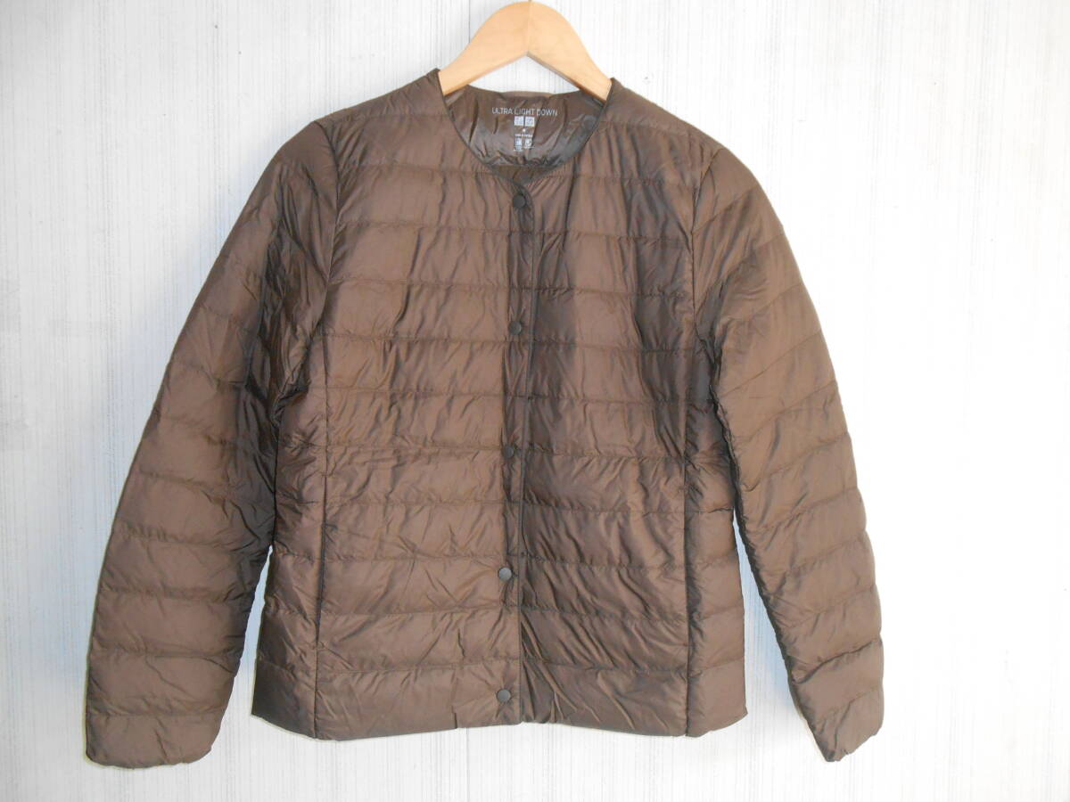 A152美品ユニクロウルトラライトボタン付き2way ダウンジャンバーこげ茶M女性用