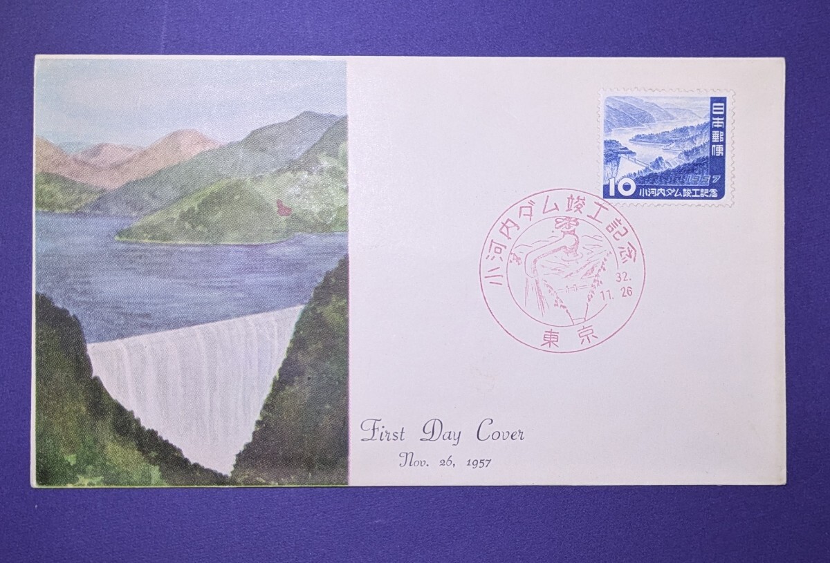 ■小河内ダム竣工記念10円1枚貼初日カバー記念印(東京)・FDC・1957年11月26日