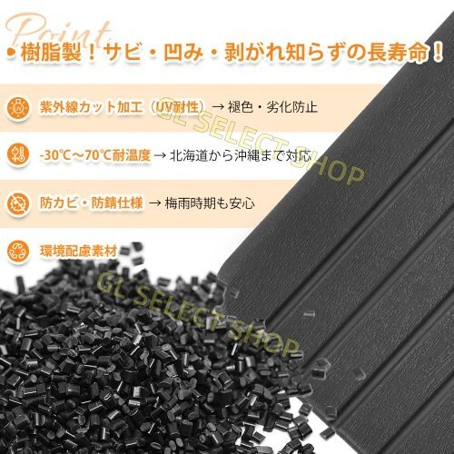 • 【樹脂製!サビ・凹み・剥がれ知らずの長寿命!】・紫外線カット加工(UV耐性)→ 褪色・劣化防止・-30℃~70℃耐温度 → 北海道から沖縄まで対応・防カビ・防錆仕様 → 梅雨時期も安心・環境配慮素材