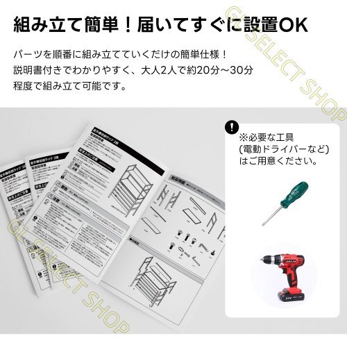 ◎06組み立て簡単 パーツを順番に組み立てていくだけの簡単仕様!説明書付きでわかりやすく、大人2人で約20分~30分程度で組み立て可能です。※組み立ての際は、作業をスムーズに進めるために電動ドライバーのご使用をおすすめします。※手回しドライバーでも組み立て可能です。