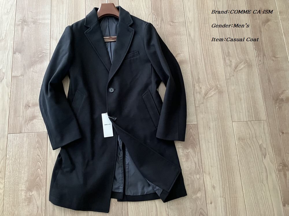 新品 COMME CA ISM MEN コムサイズム 厚手 ウールライク シングル チェスターコート 05ブラック Sサイズ 99WE50 定価19,800