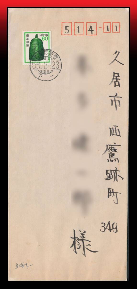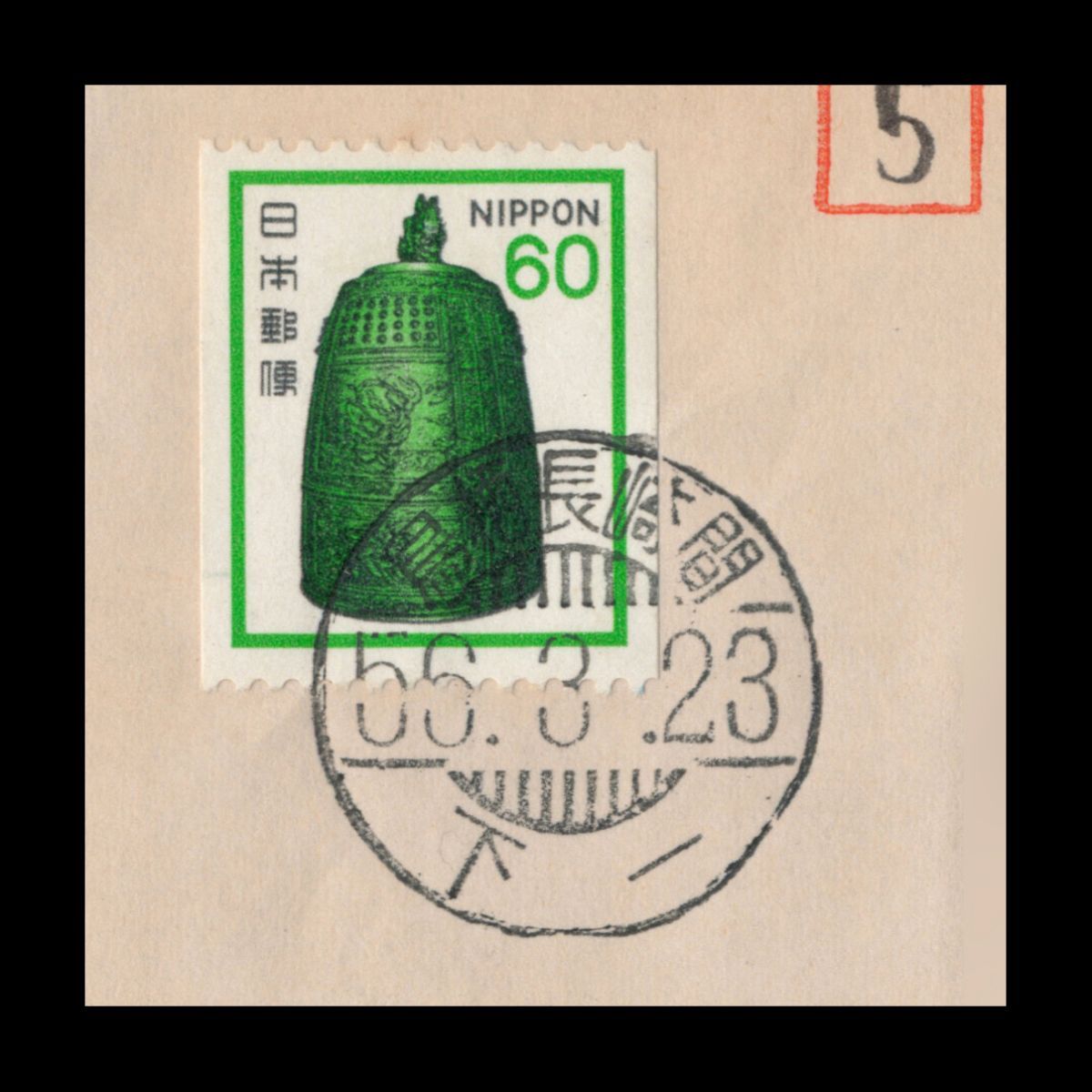 ●鉄郵印/コイル|梵鐘60円コイル/書状 鉄郵印:鳥栖長崎間/56.3.23/下一 エンタイア