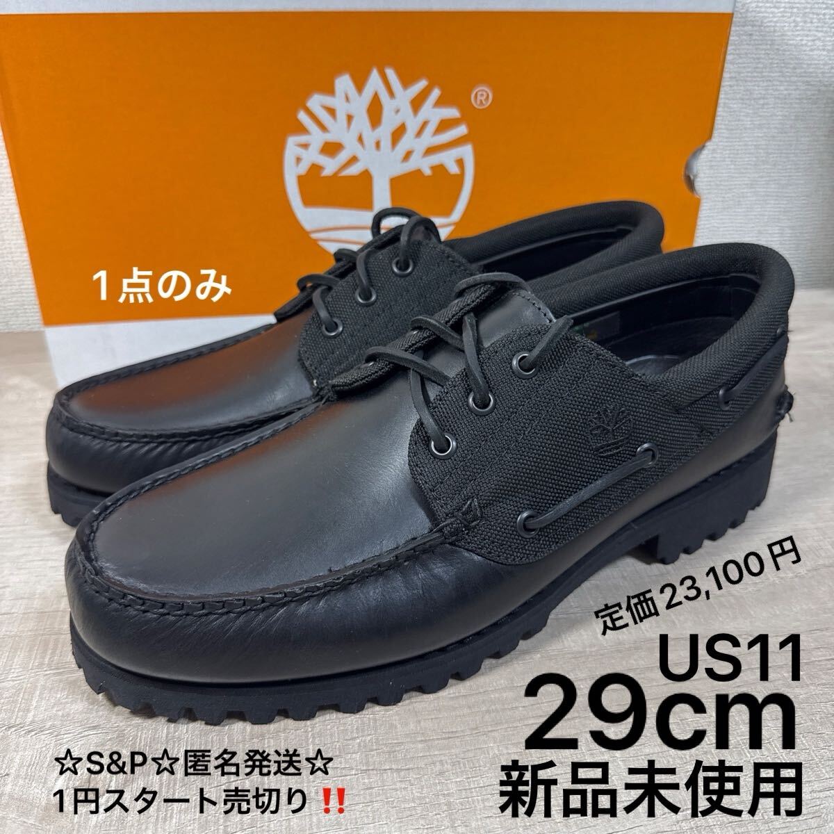 1円スタート売切り 新品未使用 29cm US11 TIMBERLAND AUTHENTIC BOAT SHOE ティンバーランド ブーツ スニーカー ブラック 天然皮革