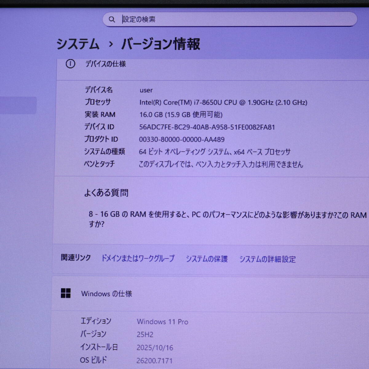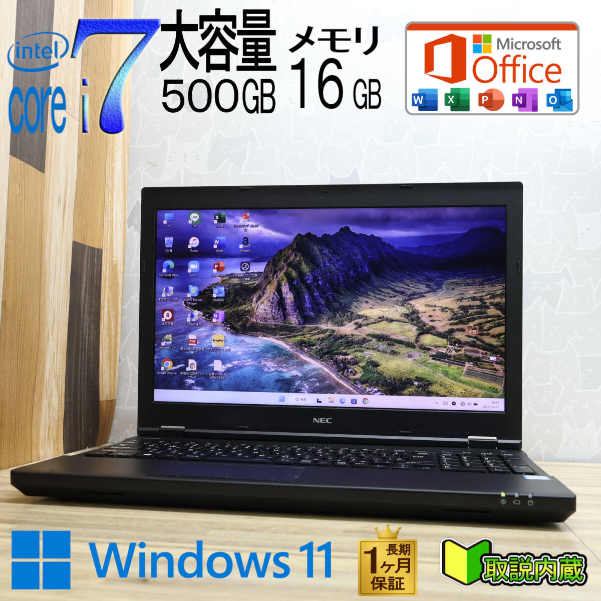★完動品 最上級8世代4コアi7!大容量500GB メモリ16GB★VKH19D Core i7-8650U Win11 MS Office2019 H&B ノートパソコン★P95151