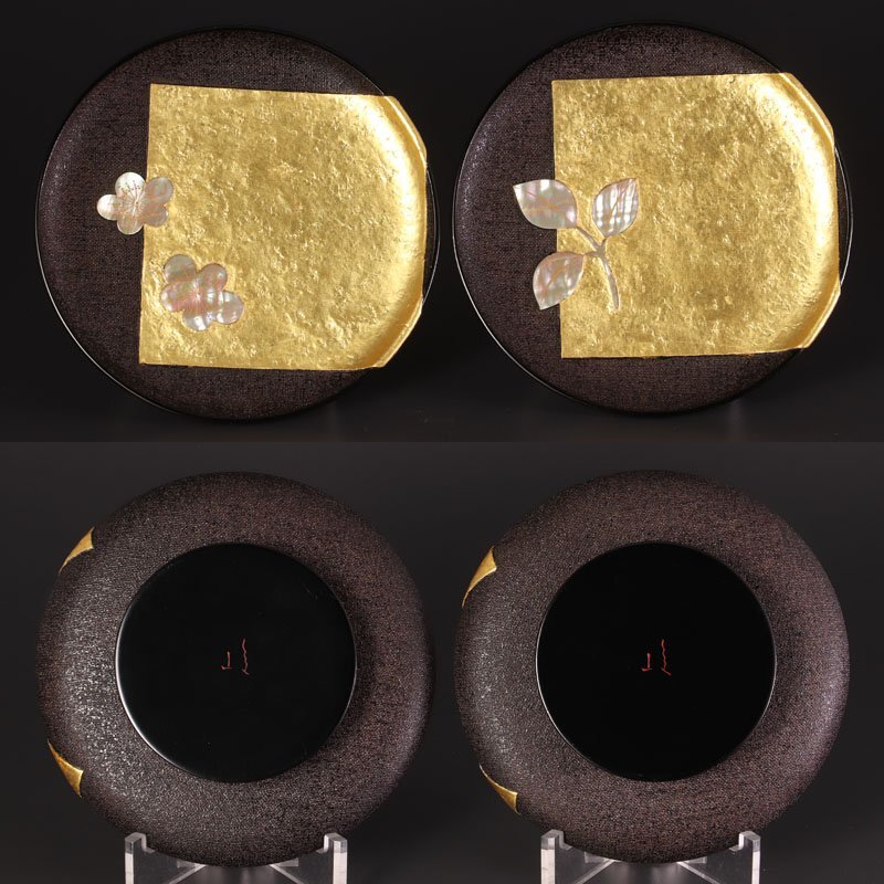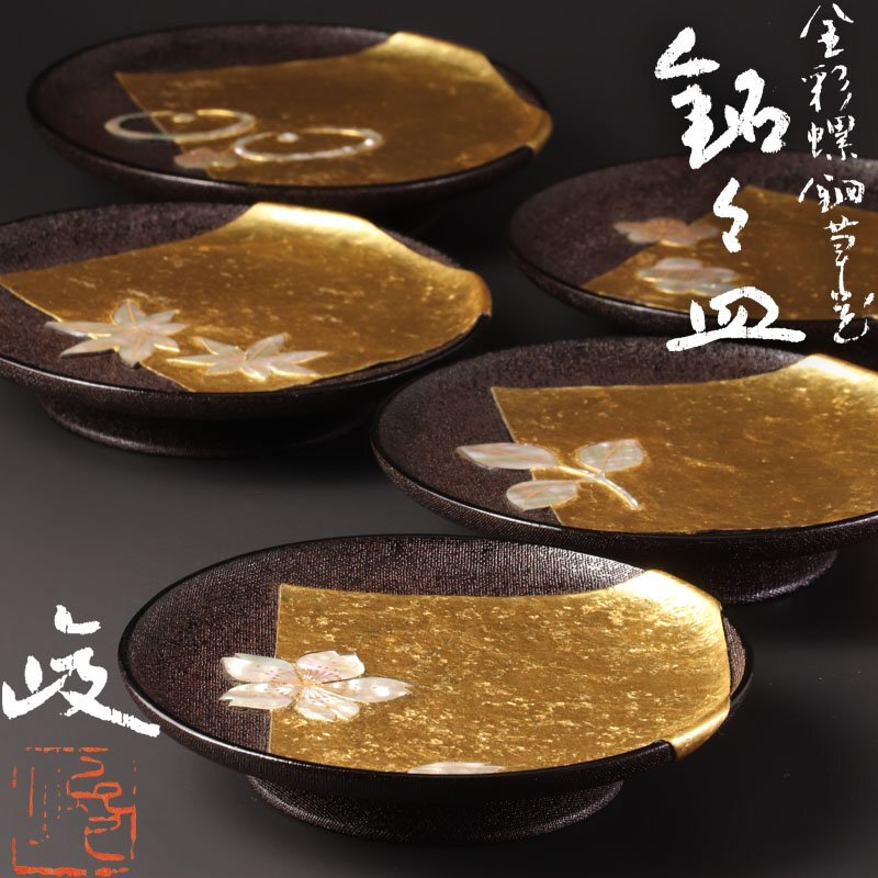| 【古美味】服部峻昇 金彩螺鈿草花銘々皿 茶道具 保証品 |