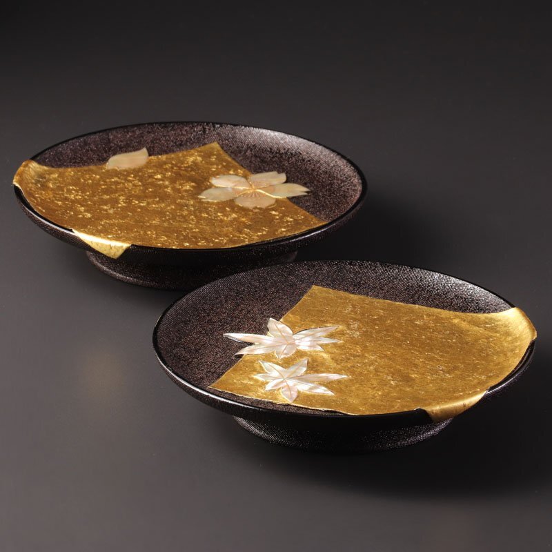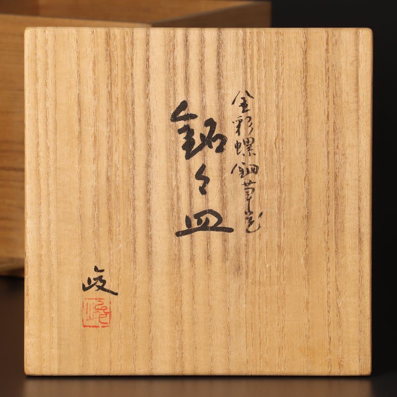 金彩と淡い色味の螺鈿がとても美しく、贅沢な時間を過ごせそうな銘々皿。絢爛豪華でありながら上品な佇まいです。五種の草花文、どれも見事な仕上がりです。 ★商品は服部峻昇の作品である事を保証致します。 |