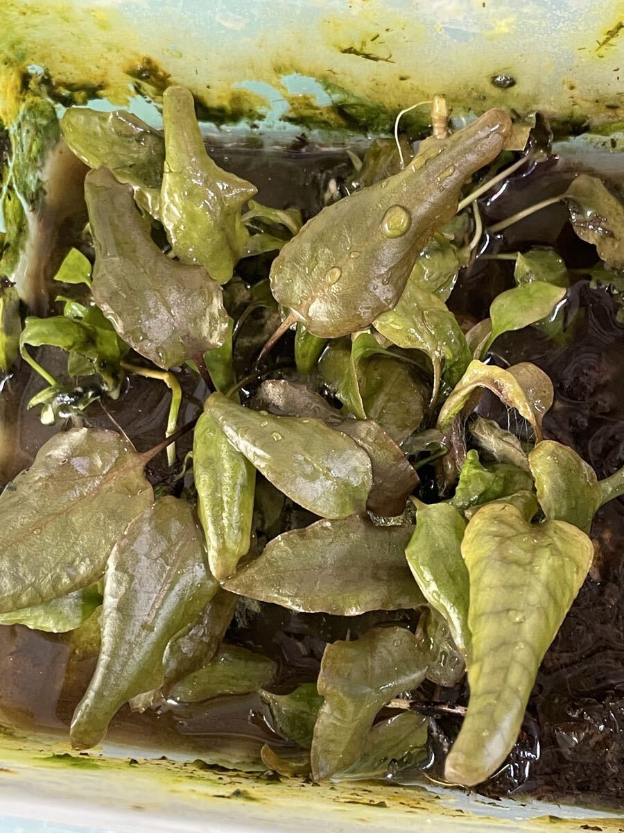 | ★商品説明★ | Cryptocoryne.sp Riau Sumatera産 LA便 の水上育成株の出品です。 画像の育成BOX内から大き目の株1株を抜いた物が今回の出品株です。 状態等は画像を参考にしてください。 育成ケースの大きさは15×23cmですので草体の大きさの参考にしてください。 ポット・砂・タグは付属しません。 コケ、枯れ葉の混入もあるかもしれませんので予めご了承ください。 ※ノークレーム・ノーリターンにてお願い致します。 | ||