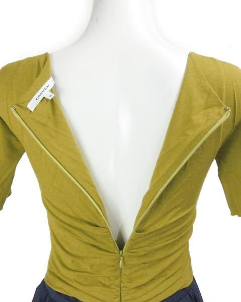 | カルヴェン CARVEN グリーン 紺 半袖 ワンピース 38 |