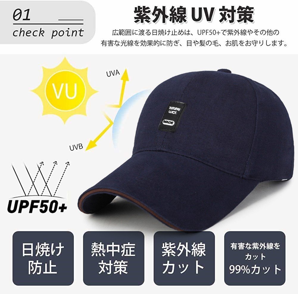 【日除け・紫外線 UV 対策】キャップメンズのつばがの長さがあなたの顔をしっかりカバーし、強い日差しに耐え、UPF50+で紫外線やその他の有害な光線を効果的に防ぎ、目や髪の毛、お肌をお守りします。uvカットだけではなく、熱中症対策にも非常に効果的!夏用の日よけ帽子として高い人気を誇るキャップ。