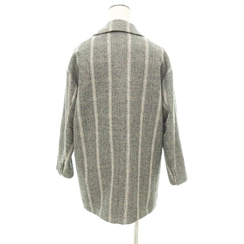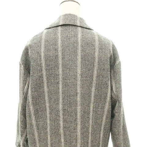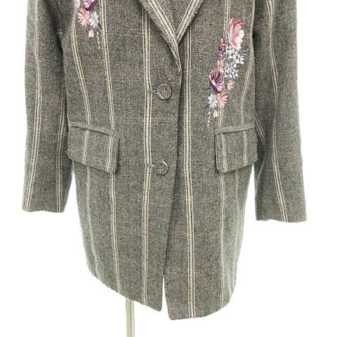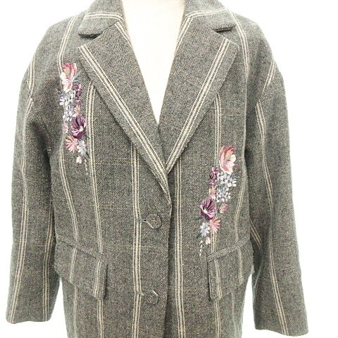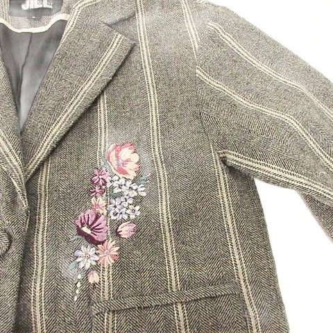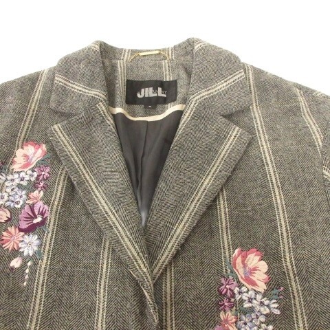ジルスチュアート JILL STUART ストライプ フラワー刺しゅう テーラード ジャケット コート ウール混 Sサイズ グレー ■YHS7