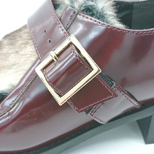 ◇ HARE ハレ ベルト ファー ローファー サイズL ボルドー レディース E