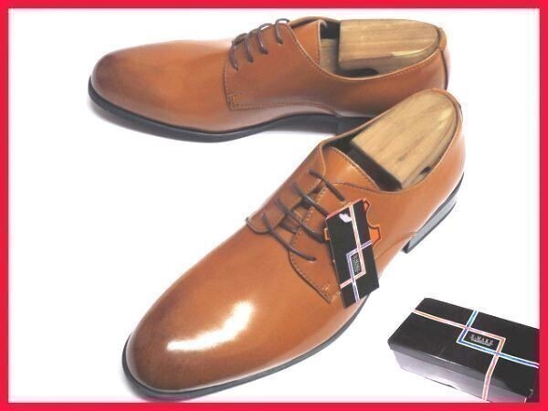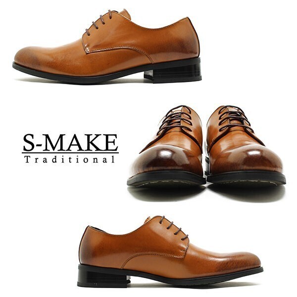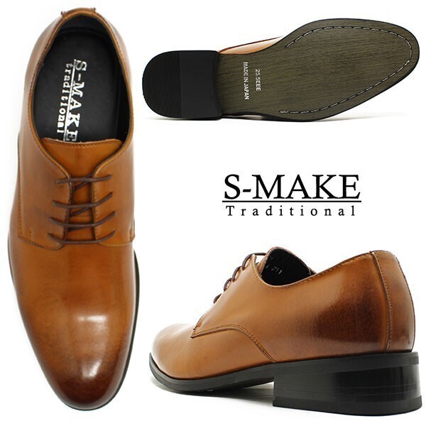 箱付き新品★日本製x本革/S-MAKE★プレーントゥ/ビジネスシューズ【26.5/EEE/茶】歩きやすい!名ブランド品質◆n7319br