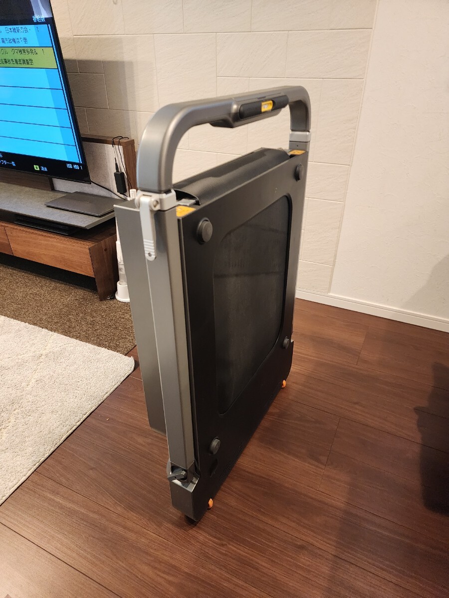 この「KINGSMITH WalkingPad Treadmill」の最大の魅力は、使用時も収納時も、驚くほどスリムなことです。そして移動キャスター付き: 本体下部に移動用のキャスターが付いているため、女性一人でも部屋の中を簡単に移動させることができます。