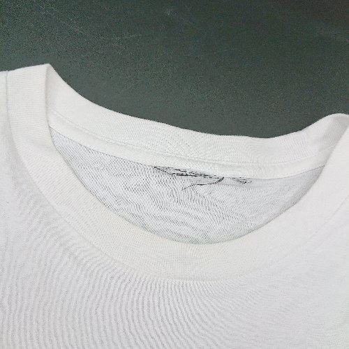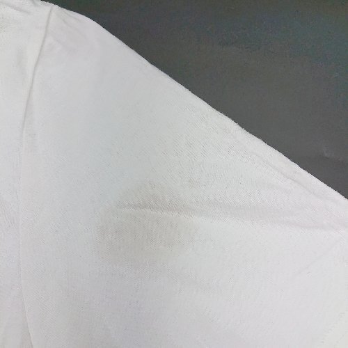 ブランドタグ切り取りあり。襟元黄ばみ、袖に広範囲のシミあり。