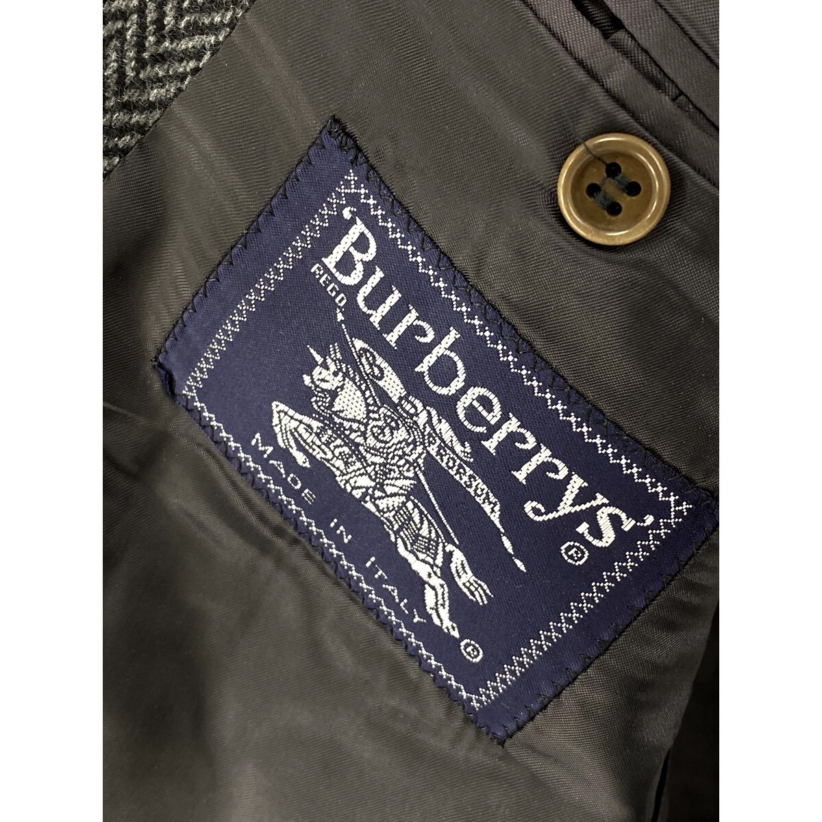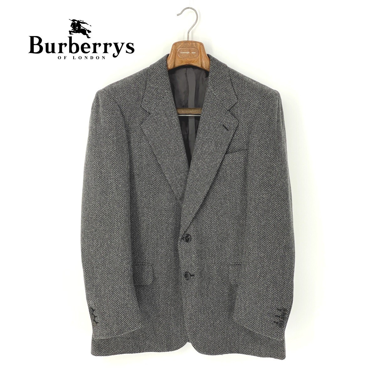 A6889/ビンテージ 80s 極美品 秋冬 総裏 BURBERRY バーバリー カシミヤ100% テーラード シングル2Bジャケット 48 灰色/イタリア製 メンズ