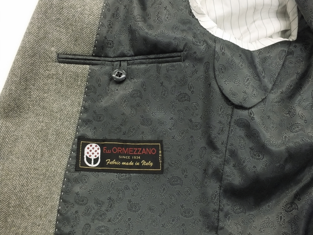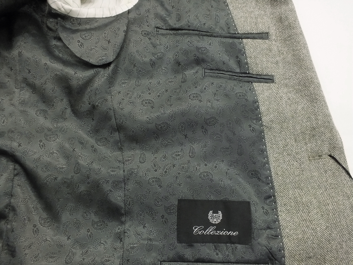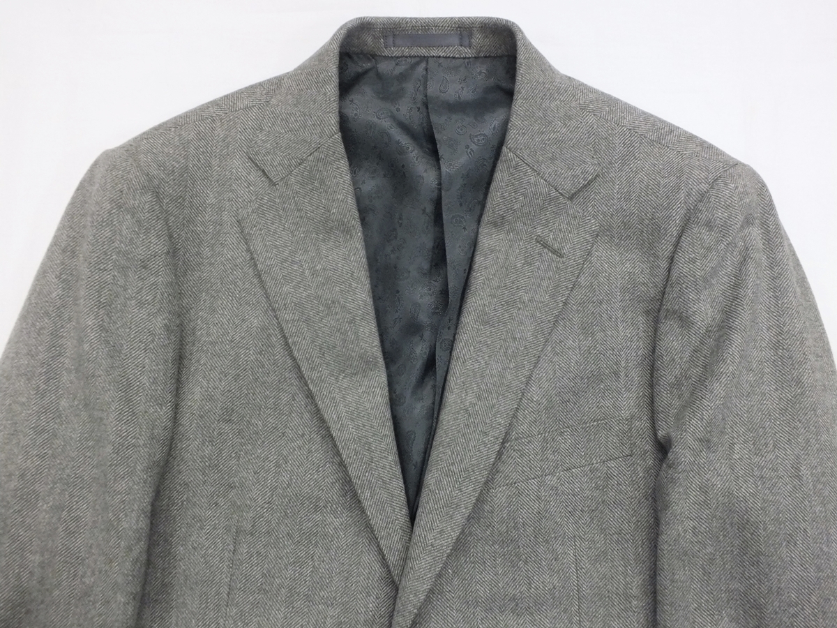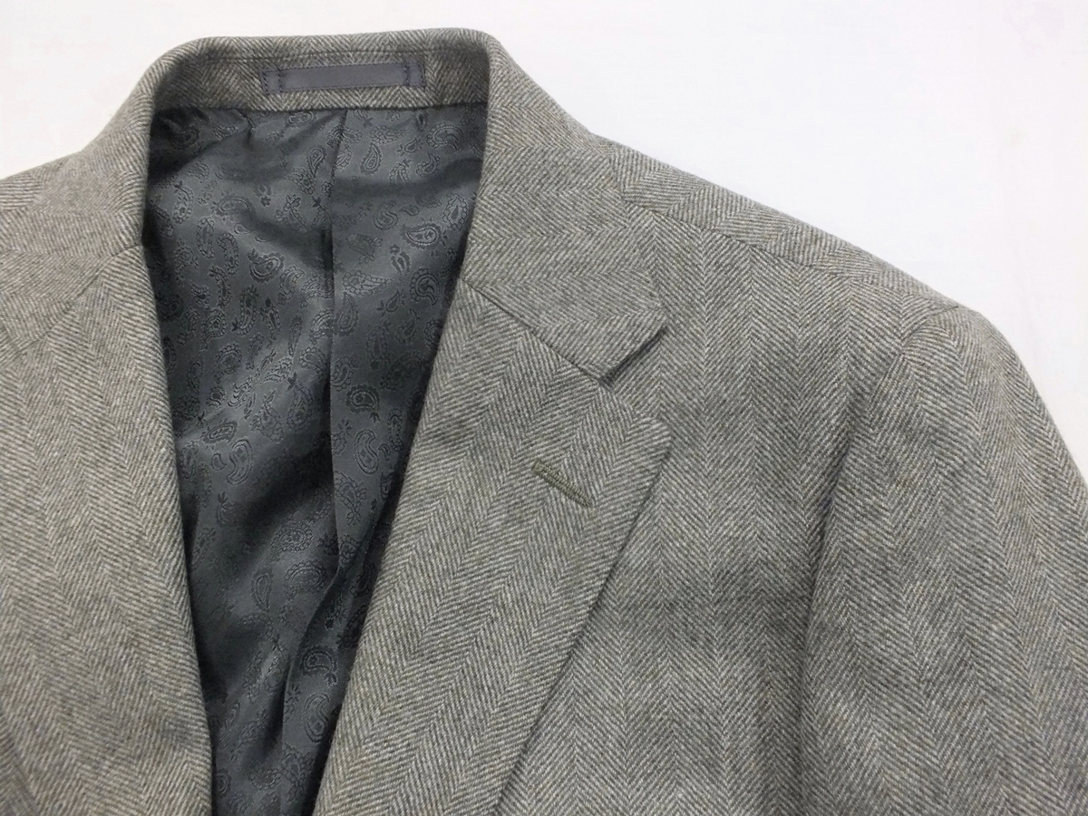 特色 ・イタリア製高級素材使用 ・胴裏:お洒落なペズリー模様、袖裏:高級品の証キュプラー使用 アイテム:イタリア製生地使用・秋冬物2釦ジャケット サイズ:AB7【胸囲100㎝ー胴囲90㎝ー身長180㎝】 上着ベンツ:センターベンツ 上着胴裏:総裏仕様 袖釦:4個 ポケット:外側3か所、内側4カ所あり 色:ライトグリーン系 柄:ヘリンボン柄 表素材:ウール100(イタリア製) 胴裏素材:ポリエステル100 袖裏素材:キュプラ100 縫製:中国 詳細な寸法 AB7【胸囲100㎝ー胴囲90㎝ー身長180㎝】 胸囲118cm/胴廻り112cm/上着丈76cm/肩幅48cm/袖丈62.5cm | ||||
