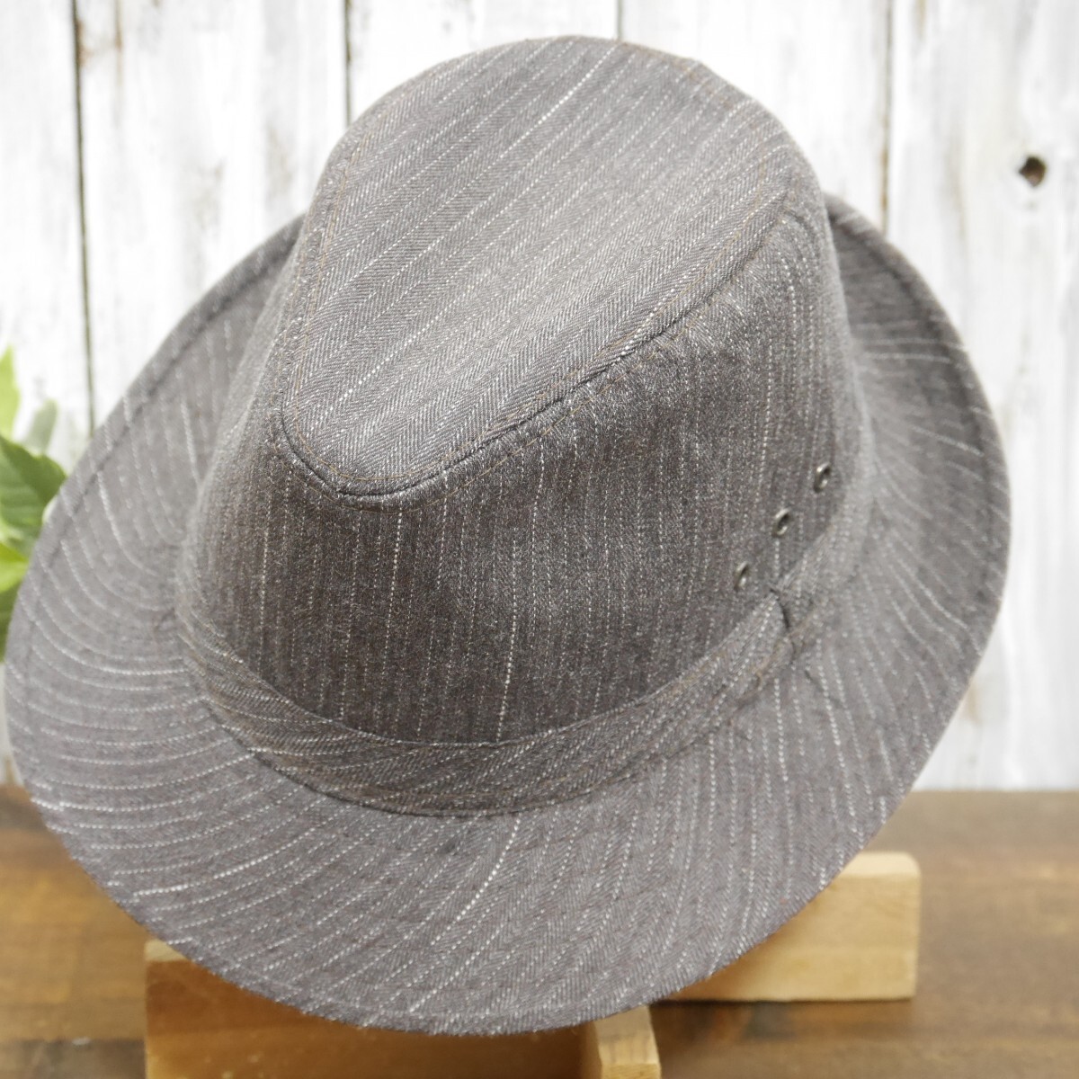 ストライプ ブラウン フェドラハット サイズ調整可 中折れ 送料\450 男女OK! オールシーズンOK ボルサリーノ パナマ