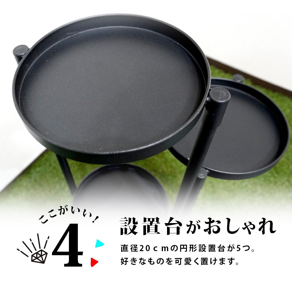・直径20cm設置台が5つ、丸い設置台がおしゃれでかわいい設計。