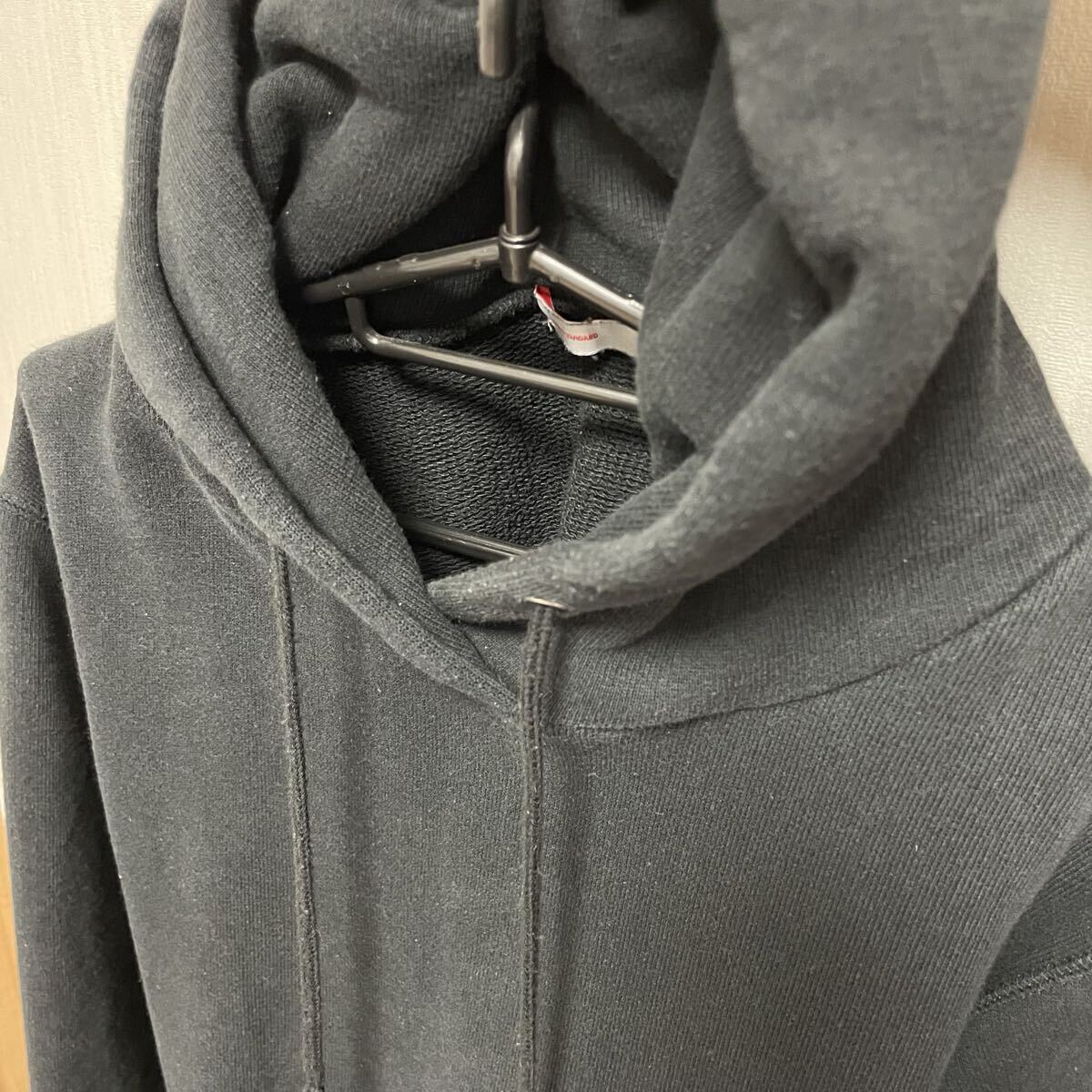 厚手なので、フードにもボリュームがあります。何度か着用しているので、首周りと、紐に毛羽立ちがあります。