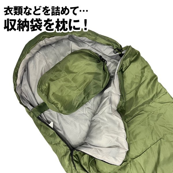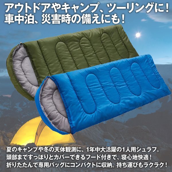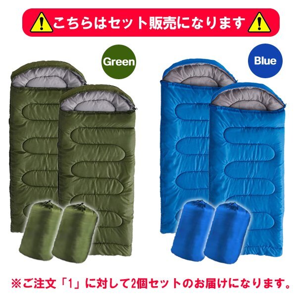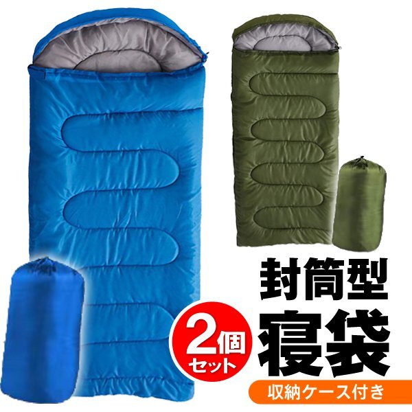 【2個セット】全長210cm BIGサイズ 寝袋 シュラフ 2枚 封筒型 防災 キャンプ アウトドア 車中泊 送料無料- 100S◇ 寝袋HD2個:グリーン