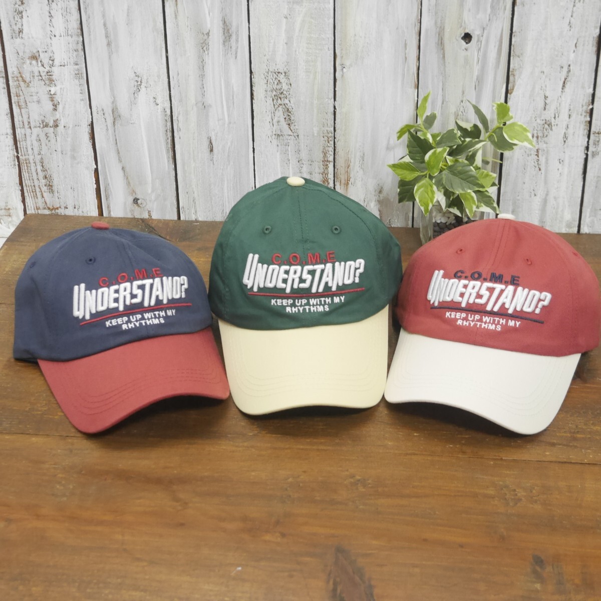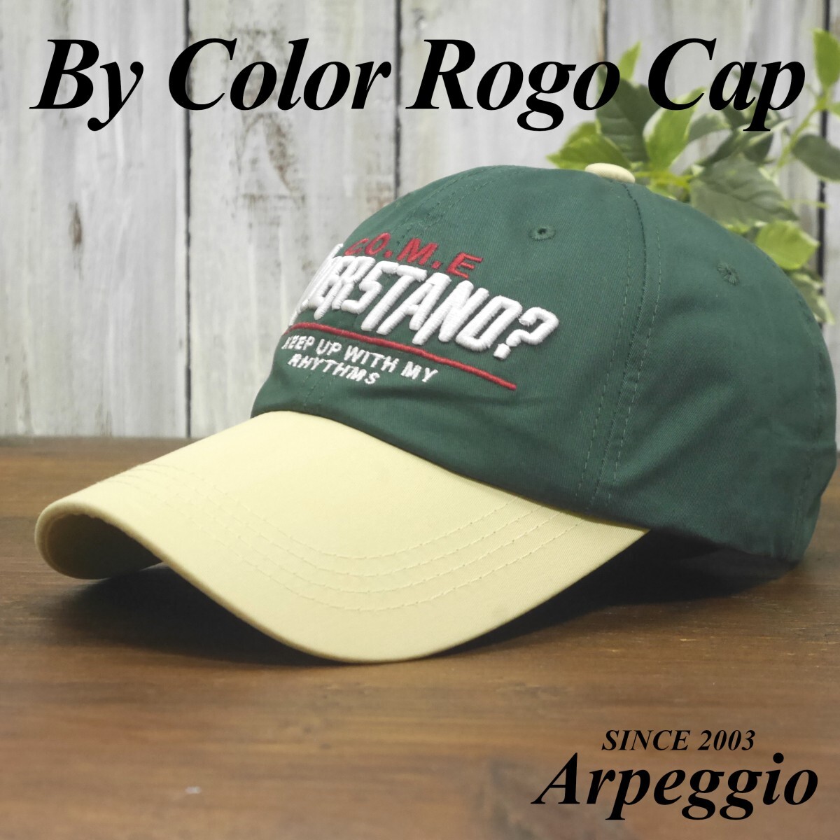 ワンポイント ローキャップ バイカラー シンプル UNDERSTANO グリーン アイボリー サイズ調整可 送料\450  男女兼用