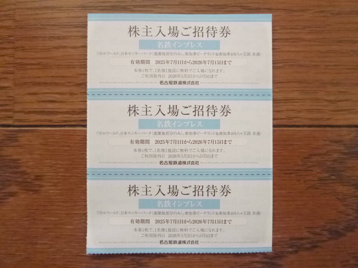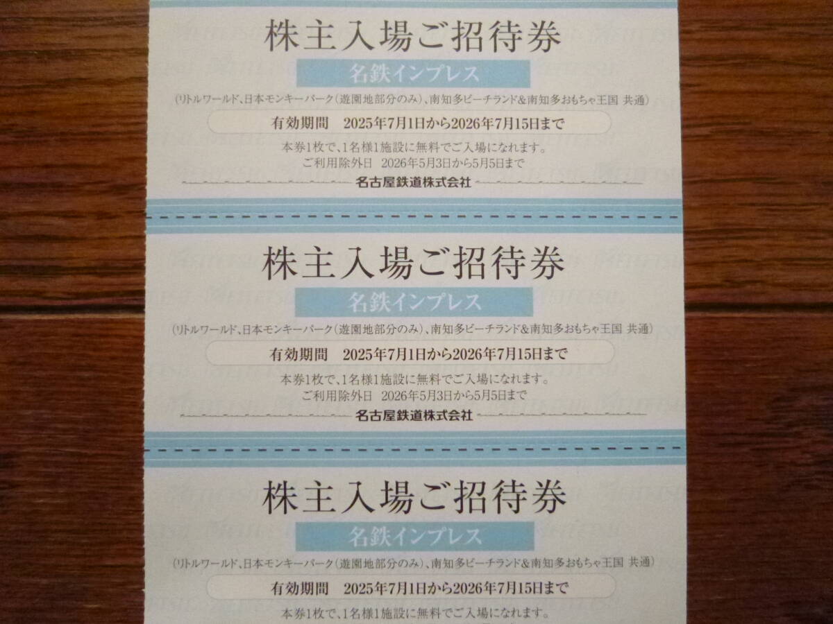 南知多ビーチランド&おもちゃ王国/リトルワールド/日本モンキーパーク入場招待券3枚組(1枚で1施設1名無料で入場可能/名鉄/名鉄インプレス)