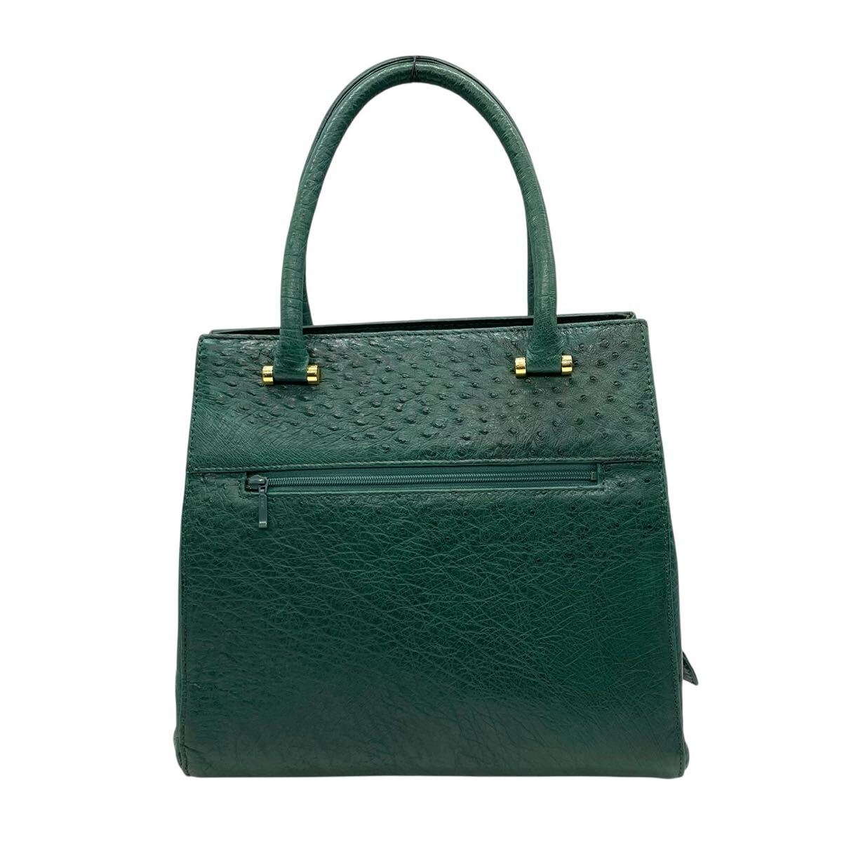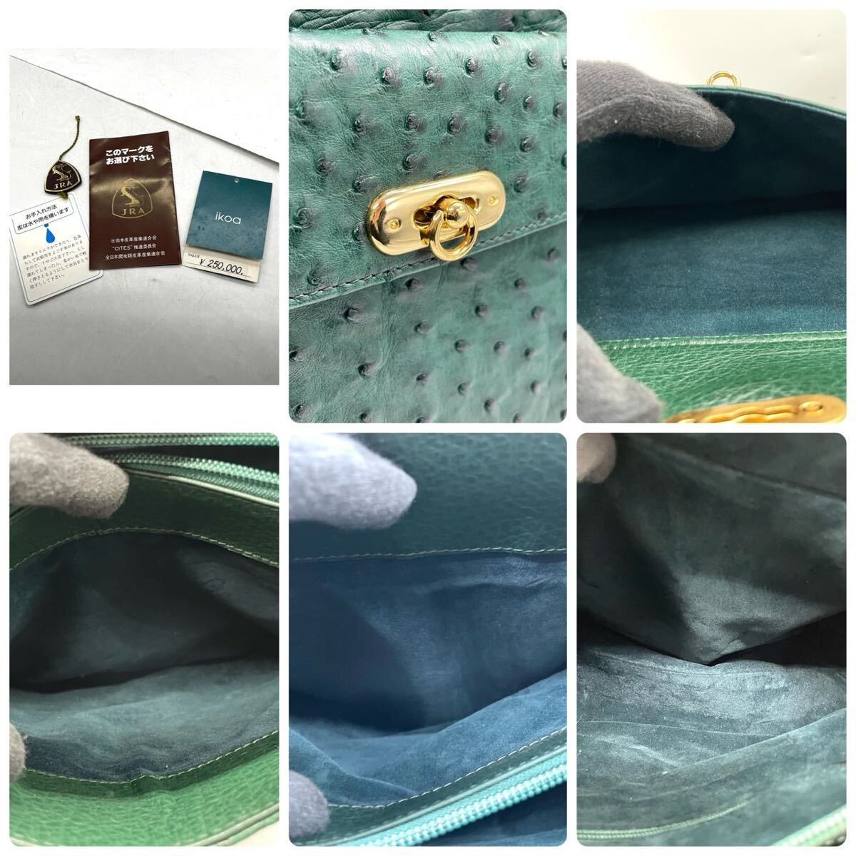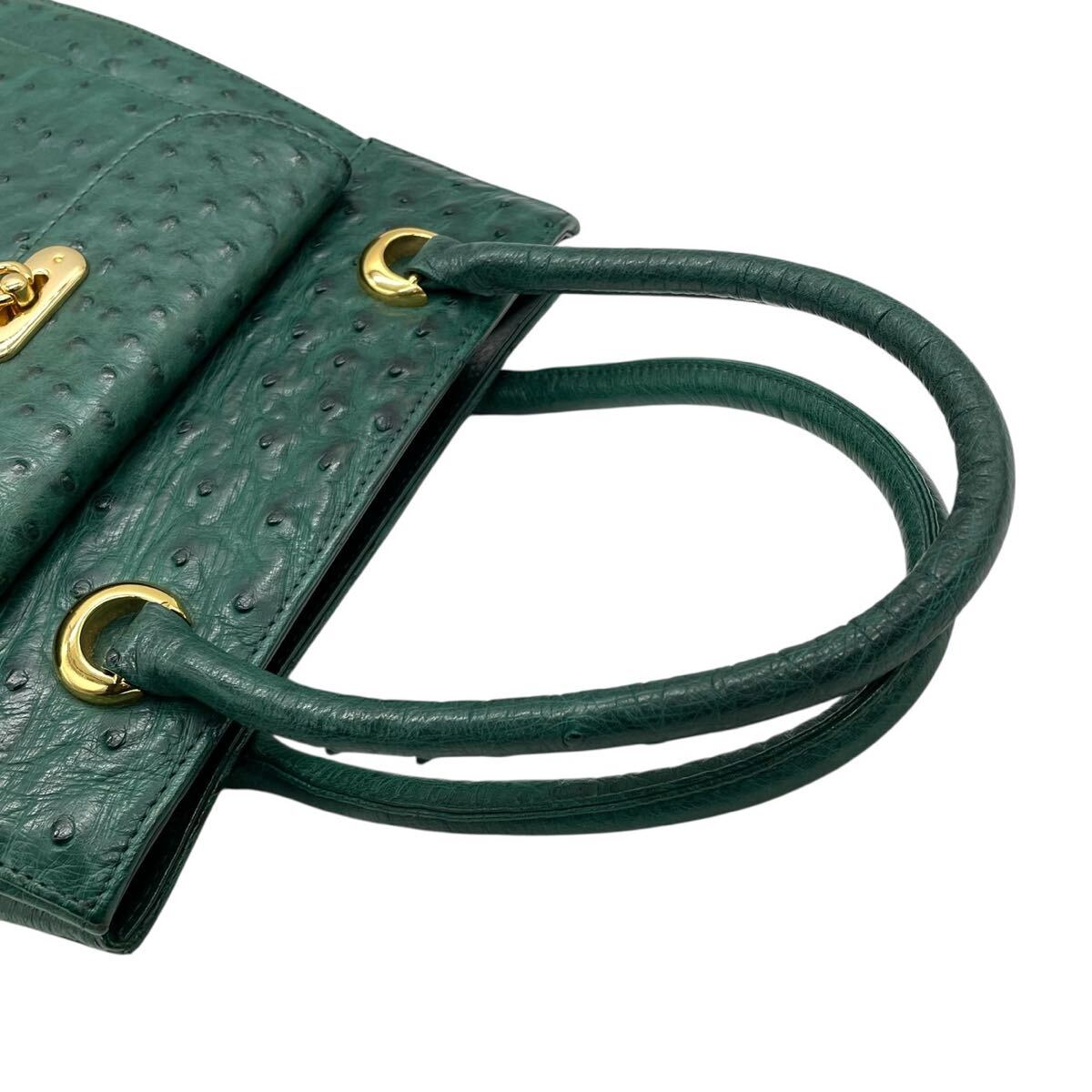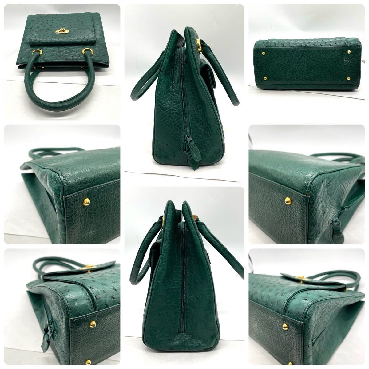 【定価25万 JRA公認】本オーストリッチ ハンドバッグ ガンチーニ金具 グリーン ゴールド金具 緑 エキゾチックレザー 自立型 ダチョウ革