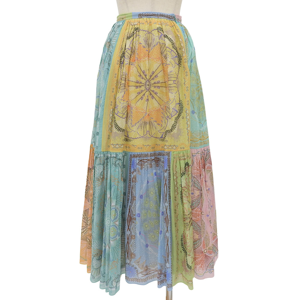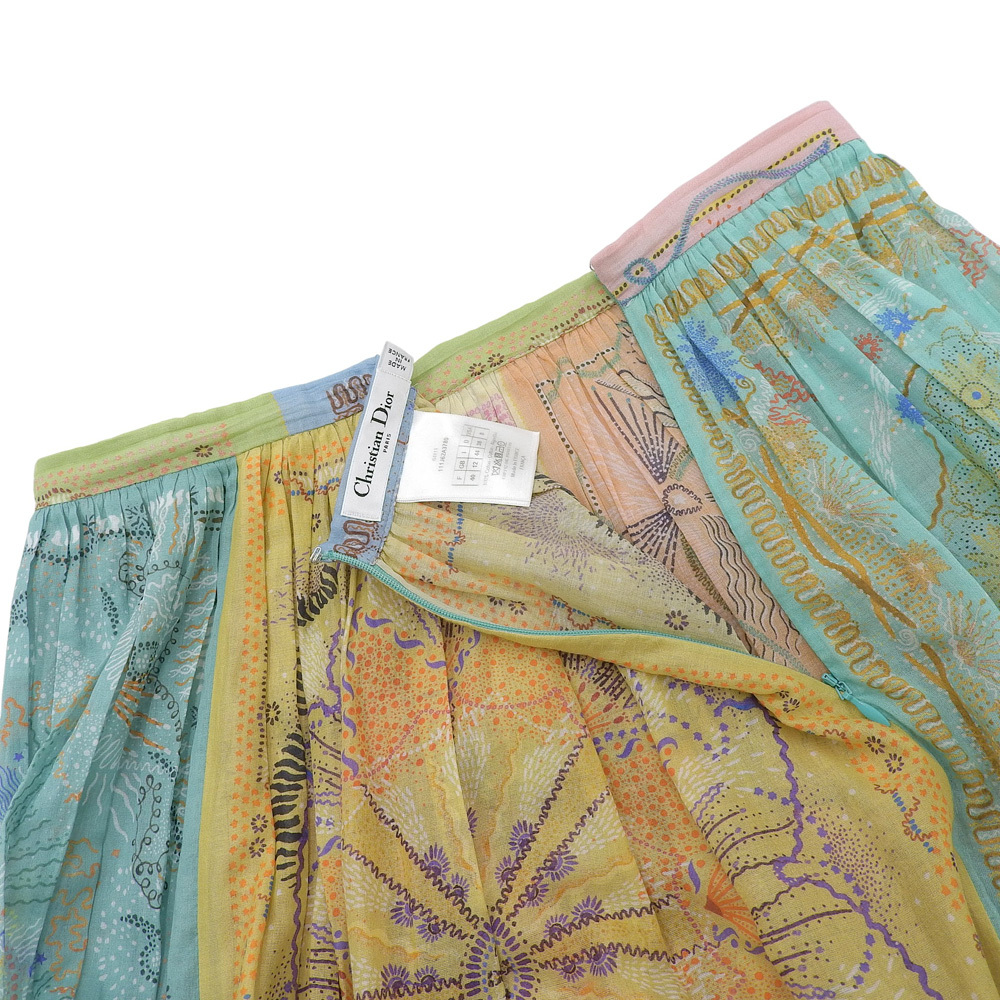 | 超美品 クリスチャンディオール Christian Dior 2021年商品 111J62A3780 コットン ギャザー ロングスカート タイダイ染め 44 |