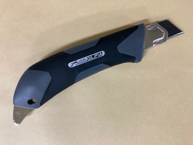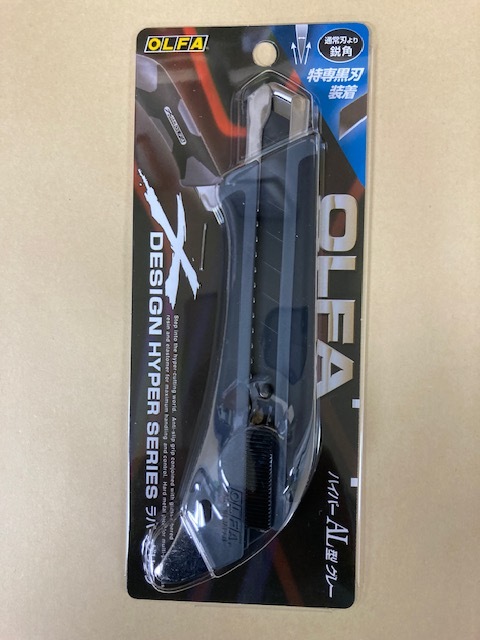 握ったときに、滑らず力のかけやすい形状を追求したX(エックス)デザイン・ハイパーシリーズの大型カッターナイフ。