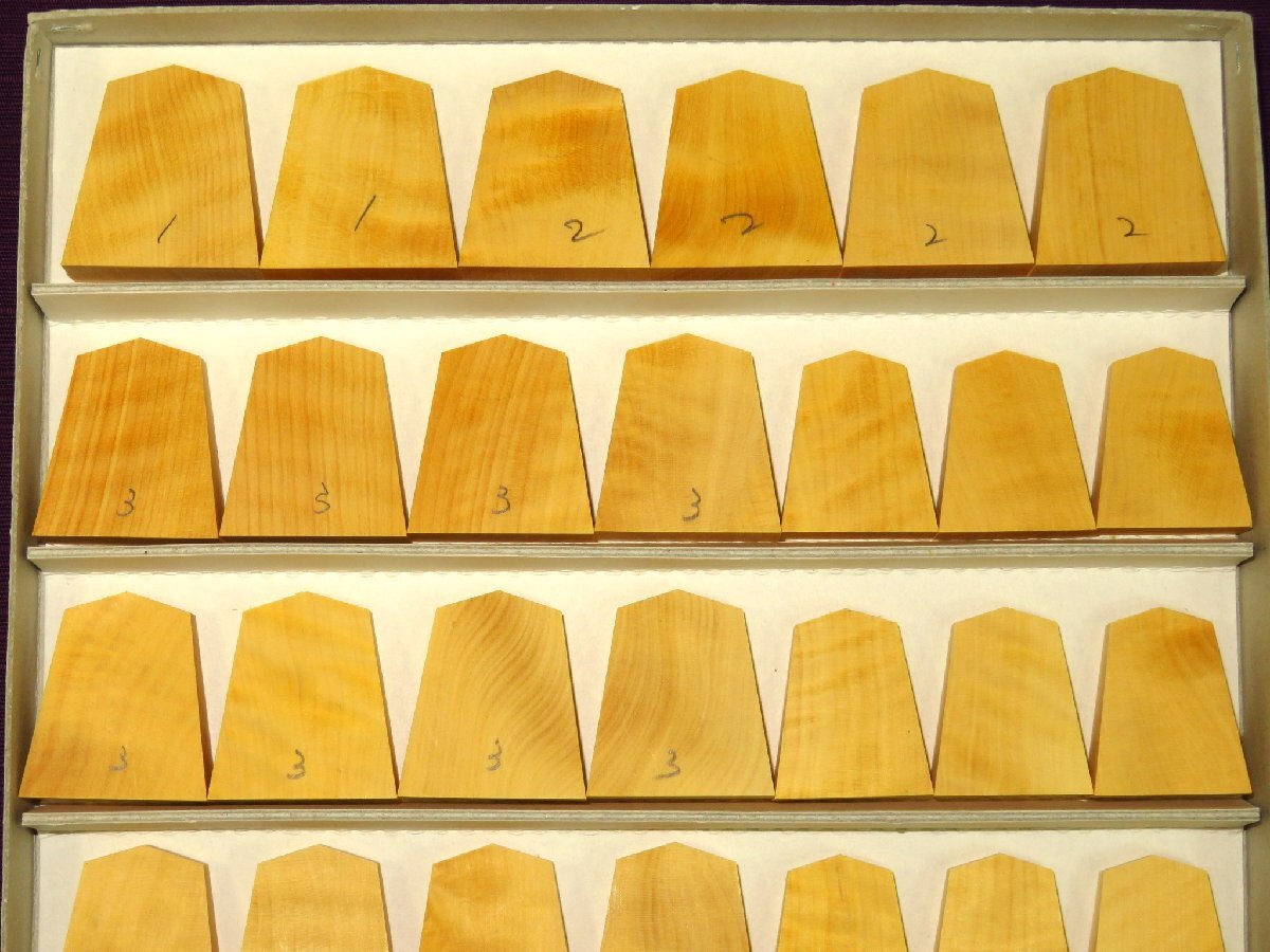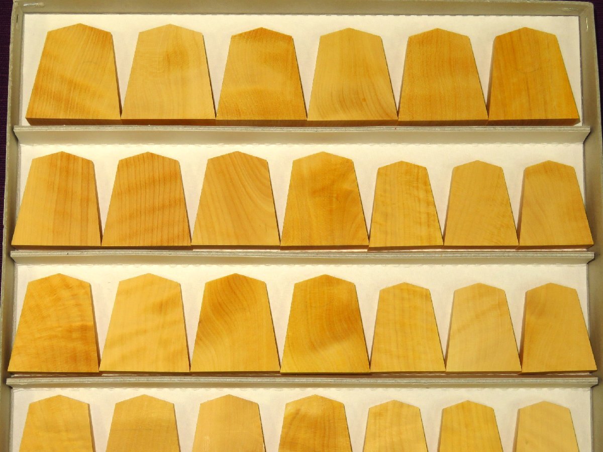 ▲「富士駒の会」監修/島黄楊「銀目系」将棋駒木地▲