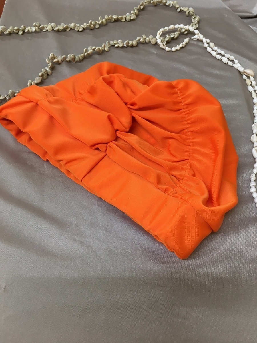 【 ジム や プール に】 お洒落 な シャーリング スイムキャップ フリーサイズ オレンジ OR♪水泳帽 夏 海 水泳帽子