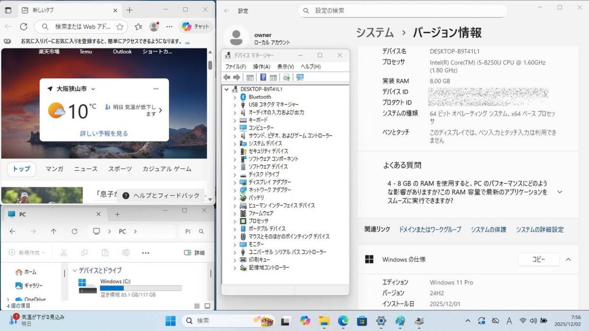 CPU内蔵(Intel(R) UHD Graphics 620)