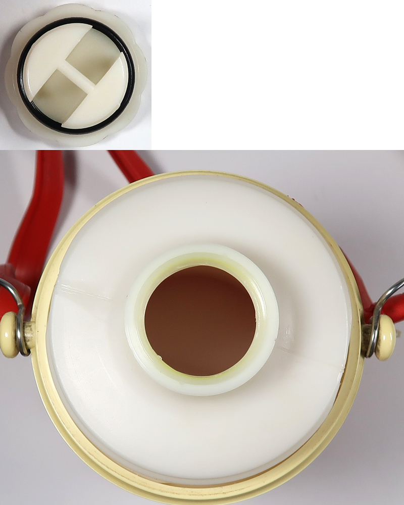 かなり古いものです。出品は画像の物のみです。使用品ですので汚れや擦れ有ります。ペン跡があります。ペン跡をとるクリーナーをつけて擦っても落ちませんでした。あとは画像をよくご覧になって確認してください。ゴムパッキンは付いていますが、水を入れて試しておりません。ゴムパッキンは劣化している可能性があります。上部と下部を外すことができてコップになります。このような状態ですのでお取引後はいかなる理由がありましても返品は出来ませんしクレームもお受け出来ません