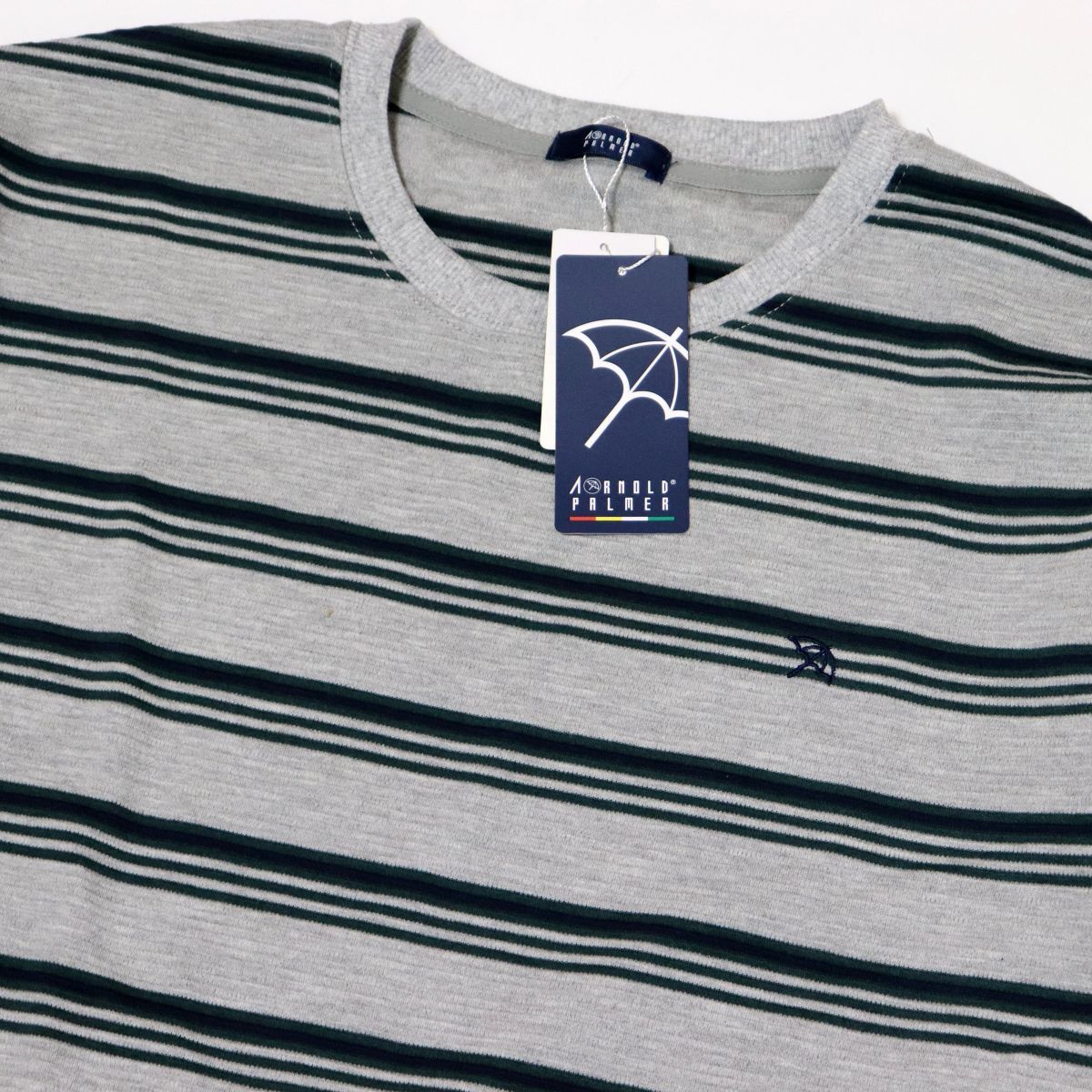 ★アーノルドパーマー ARNOLD PALMER 新品 メンズ カジュアル ボーダー 長袖 シャツ 灰 XLサイズ [8701515-04-LL] 一 三 参★QWER★