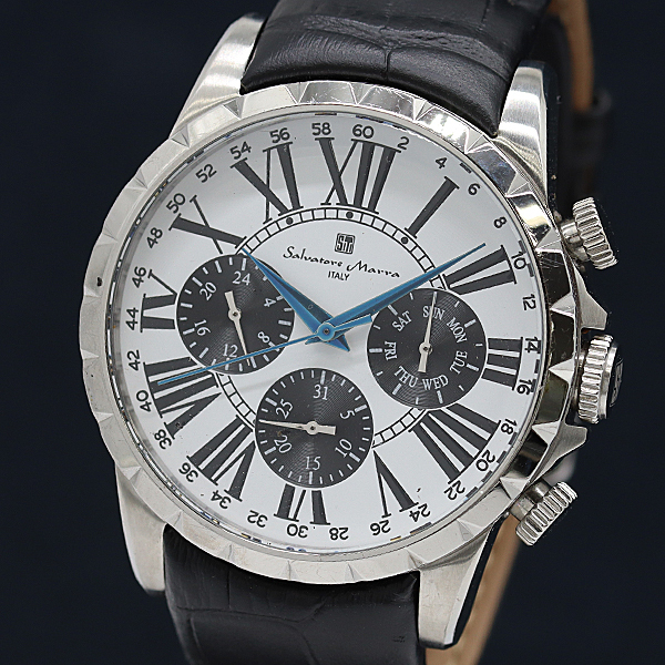 1円 稼働 サルバトーレマーラ QZ クロノグラフ パンダ文字盤 15103-2 メンズ時計 9339100 12BGY KMR