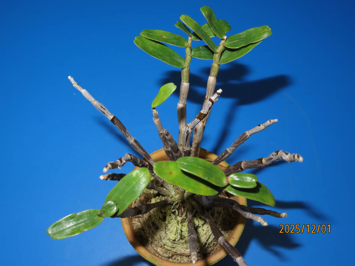 セッコク・長生蘭は最低気温が10℃近くになると、昨年のバルブ(矢)の葉及び下葉を落葉させる時期になります。
