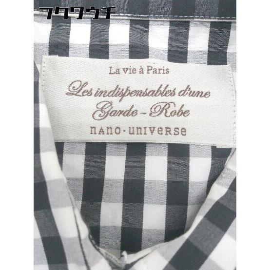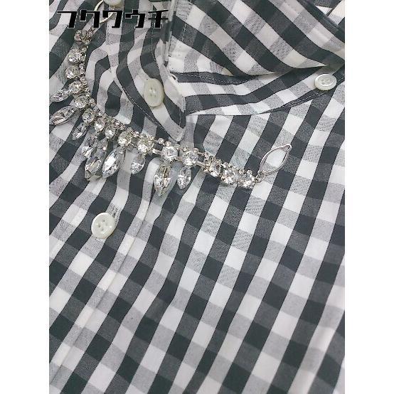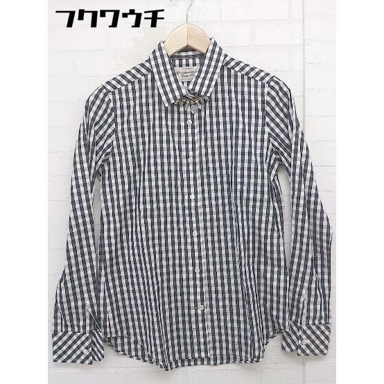 ◇ La vie a paris nano universe ギンガムチェック ビジュー付き 長袖 シャツ サイズF ホワイト ブラック系 レディース