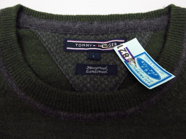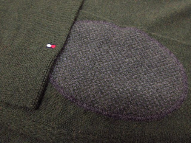 h5618 美品 TOMMYHILFIGER トミーヒルフィガー 丸首 肘あて Lサイズ クリーニング済 セーター ニット グリーン