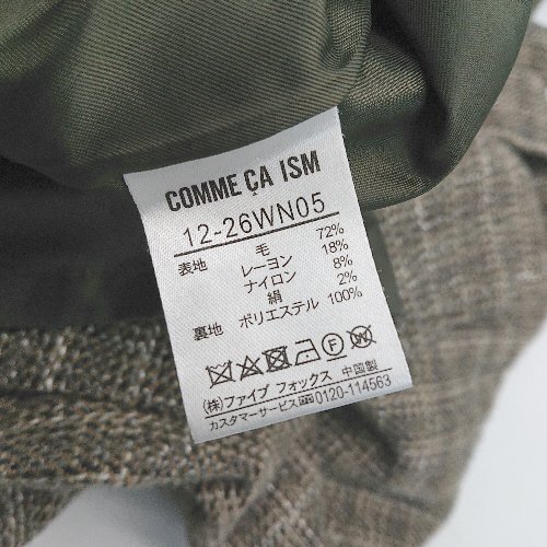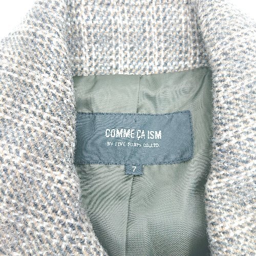 ◇ COMME CA ISM コムサイズム 起毛 裏地 ボタン チェック柄 カジュアル 長袖 コート サイズ7 ブラウン レディース E