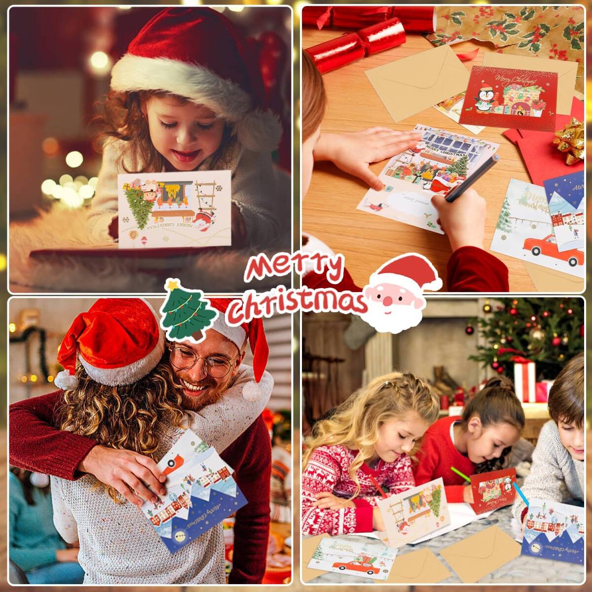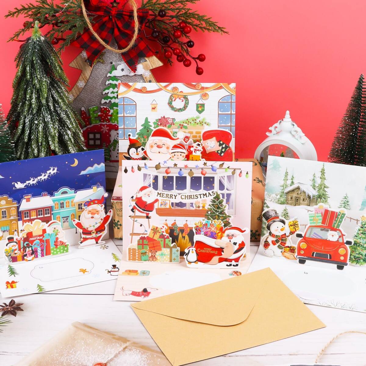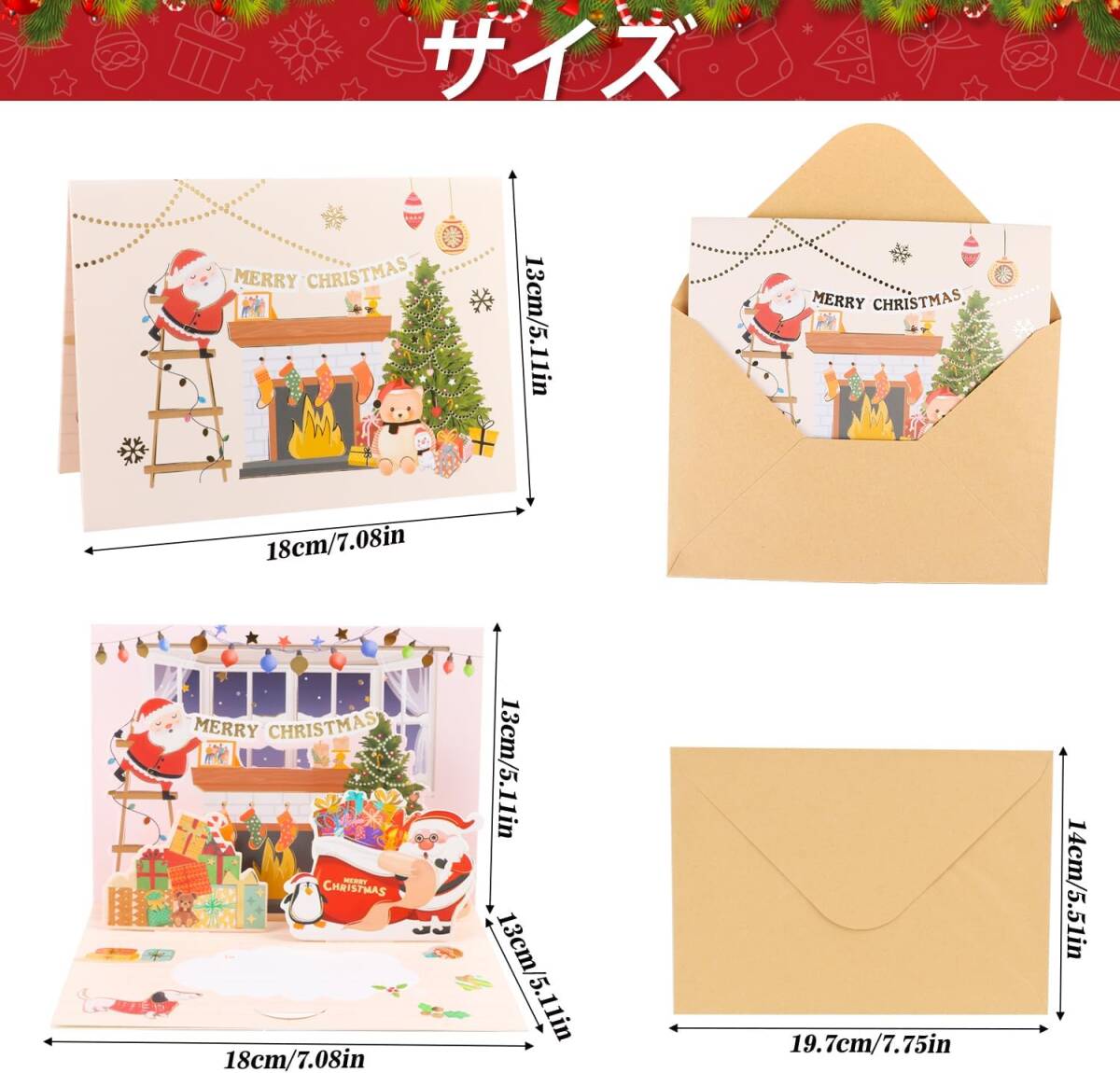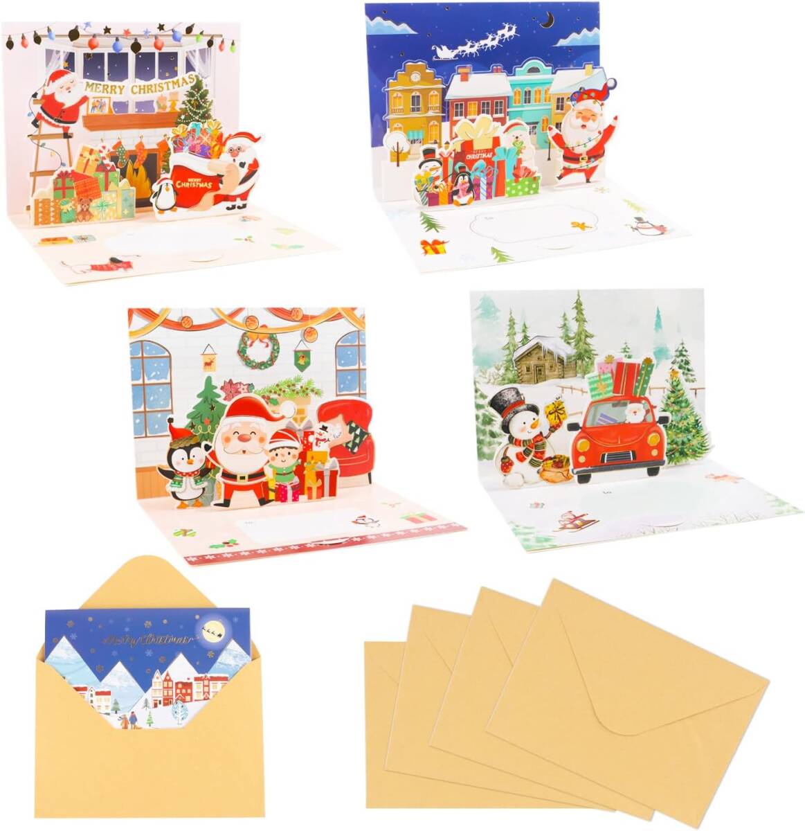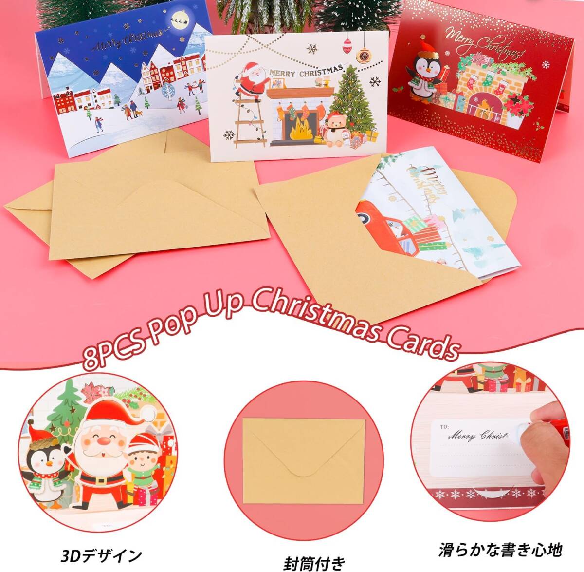 やったー!クリスマス カード 立体 3D メッセージカード 8枚入り グリーティングカード 金箔押し 可愛い 飾り クリスマス柄 サンタ
