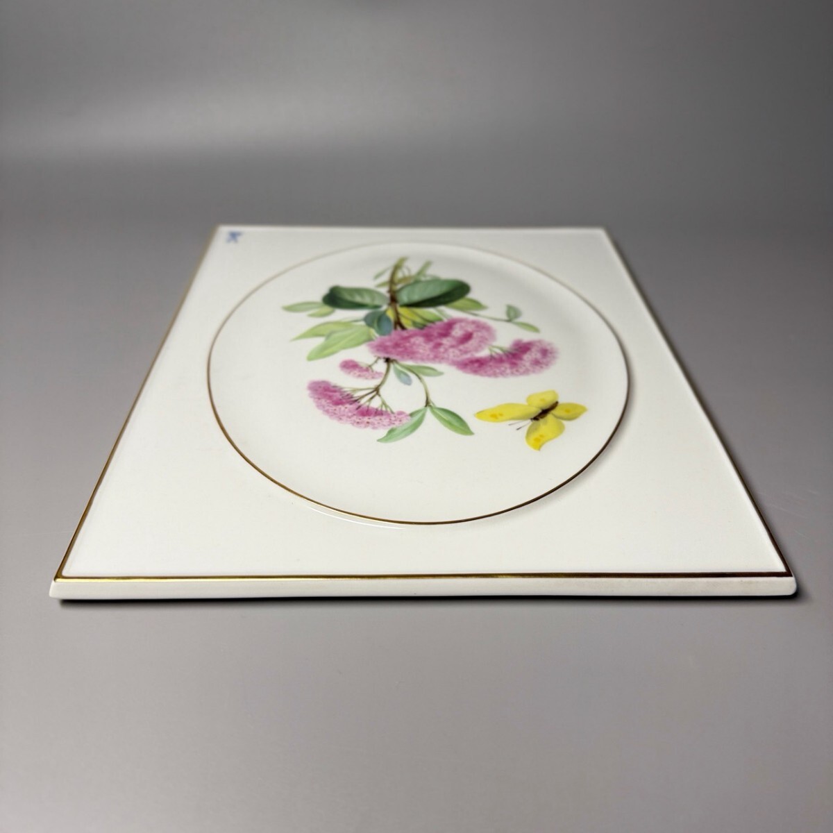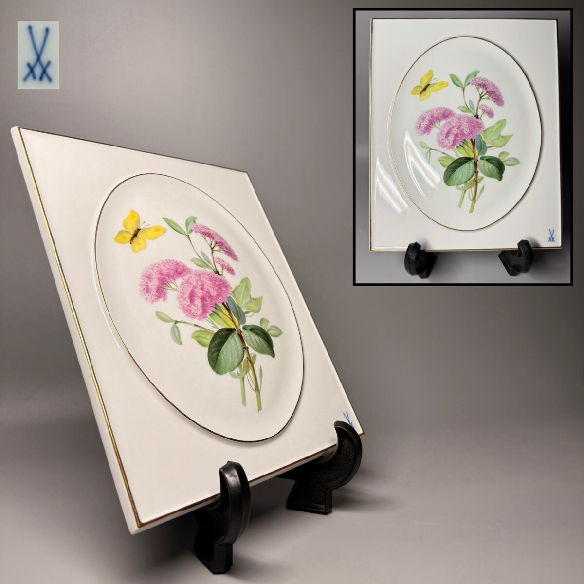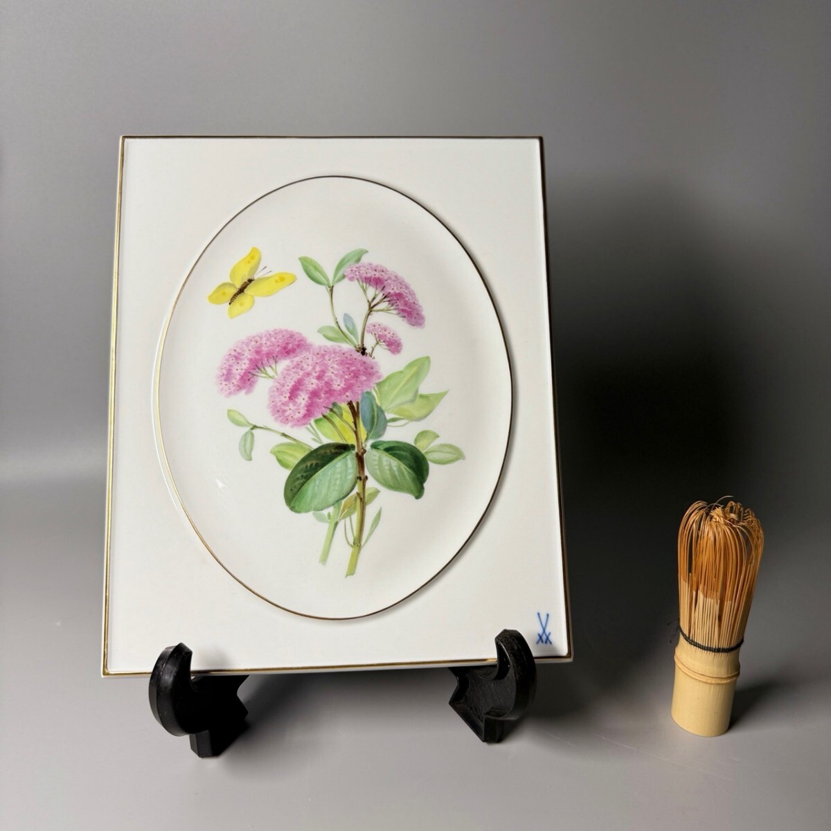 Meissen マイセン 花 蝶 陶板画 プラーク インテリア 陶磁器 壁飾り