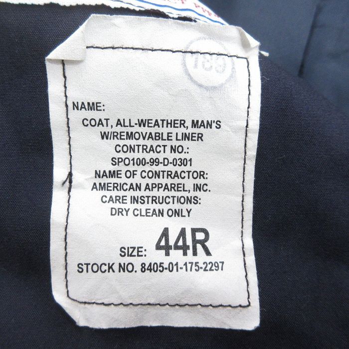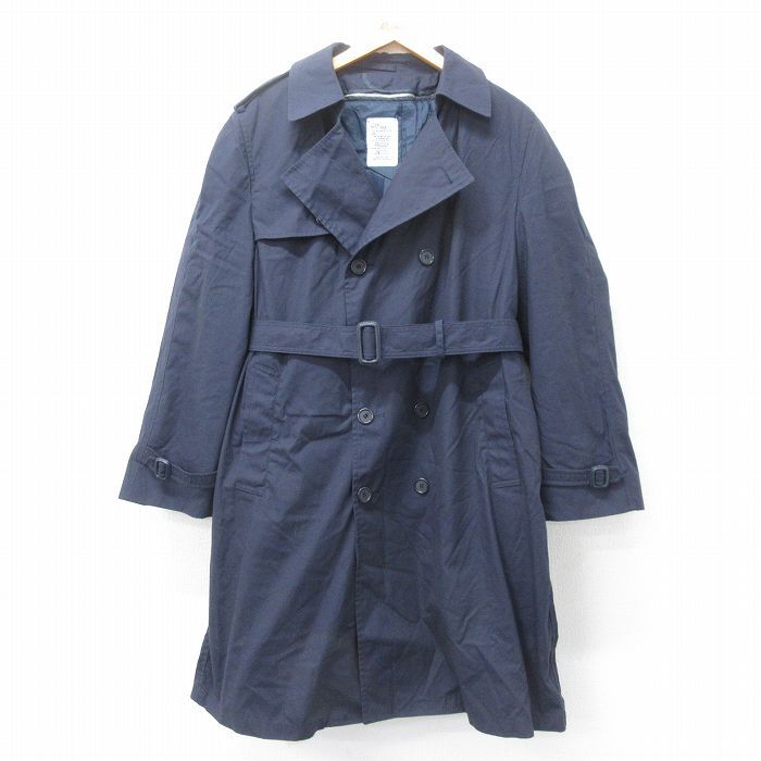 【商品名】 M★古着 長袖 ミリタリー トレンチ コート メンズ 90年代 90s ロング丈 USA製 紺