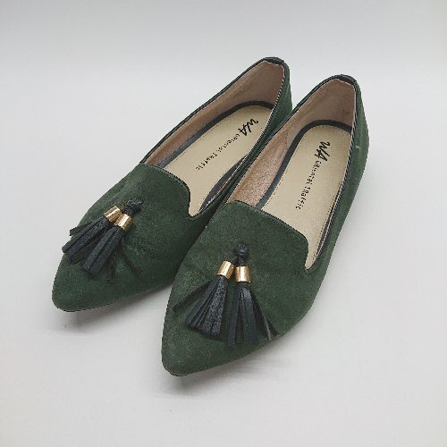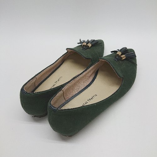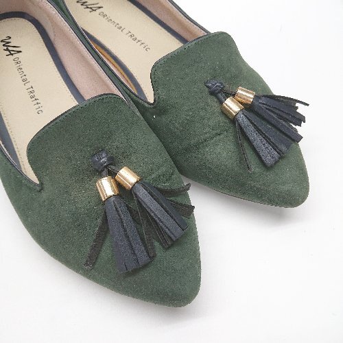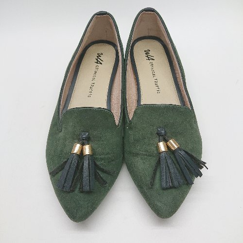 ◇ Oriental Traffic ポインテッドトゥ フリンジ チャーム フラット シューズ パンプス 23.5cm グリーン レディース E