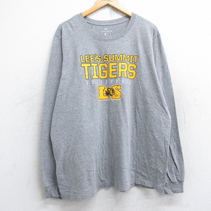 【商品名】 XL★古着 ナイキ NIKE 長袖 Tシャツ メンズ TIGERS バレーボール 大きいサイズ クルーネック グレー 霜降り