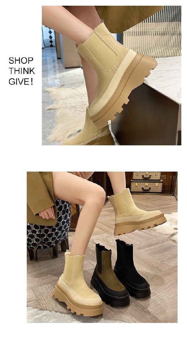 ブーツ ショート 裏ボア 美脚 脚長 サイドゴア 裏起毛 滑り止め 厚底 5cm 36 ダークグリーン(裏起毛)